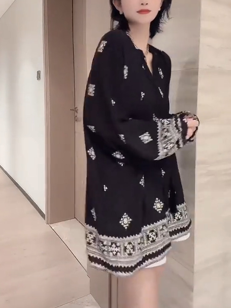 Модная дышащая летняя тонкая дизайнерская рубашка, свободный крой, с вышивкой