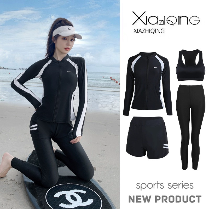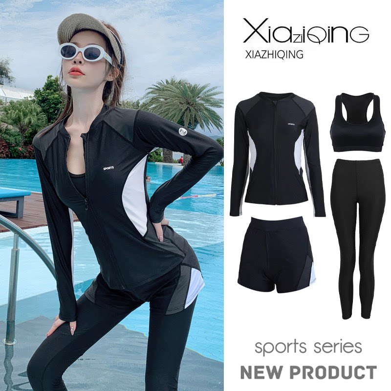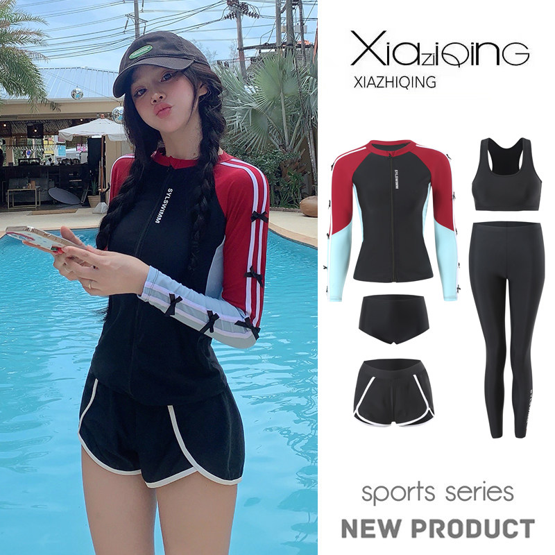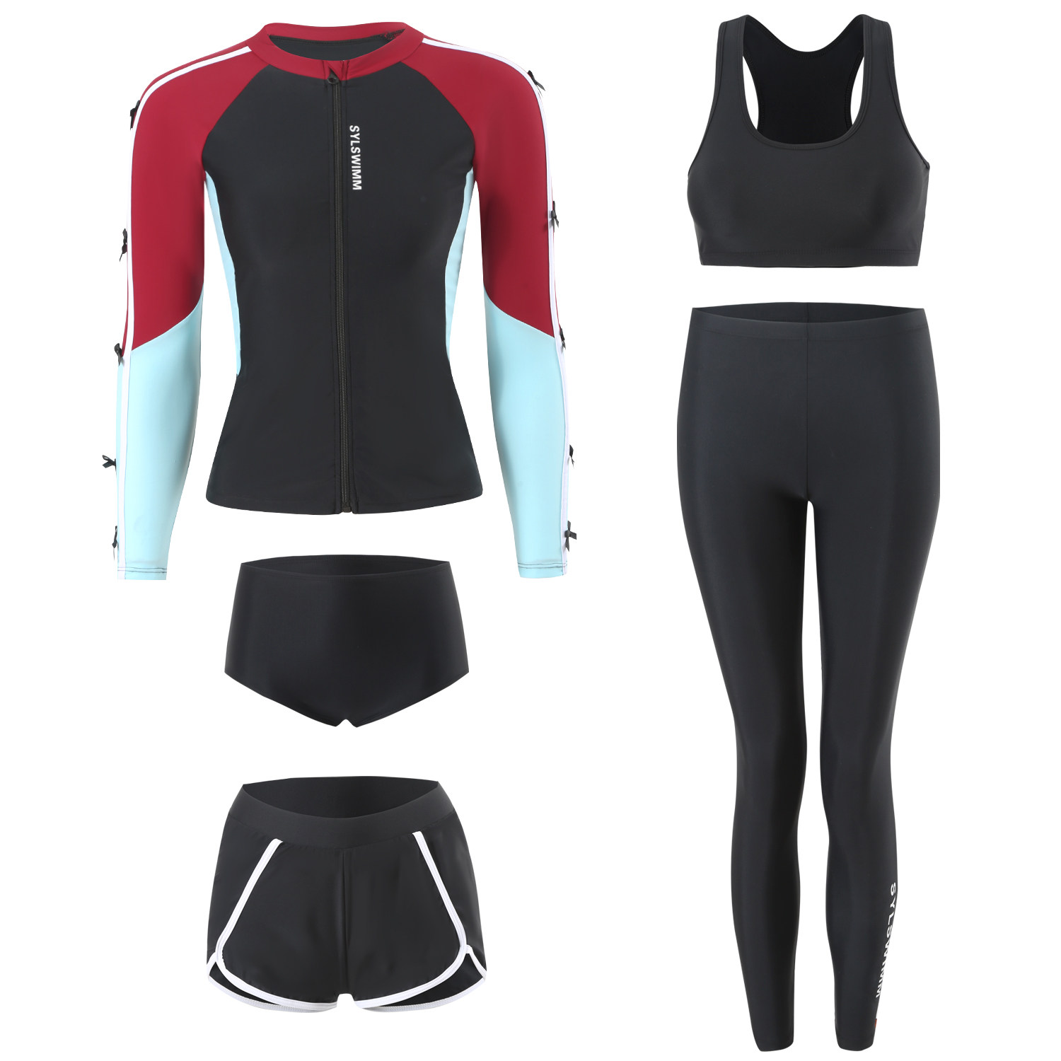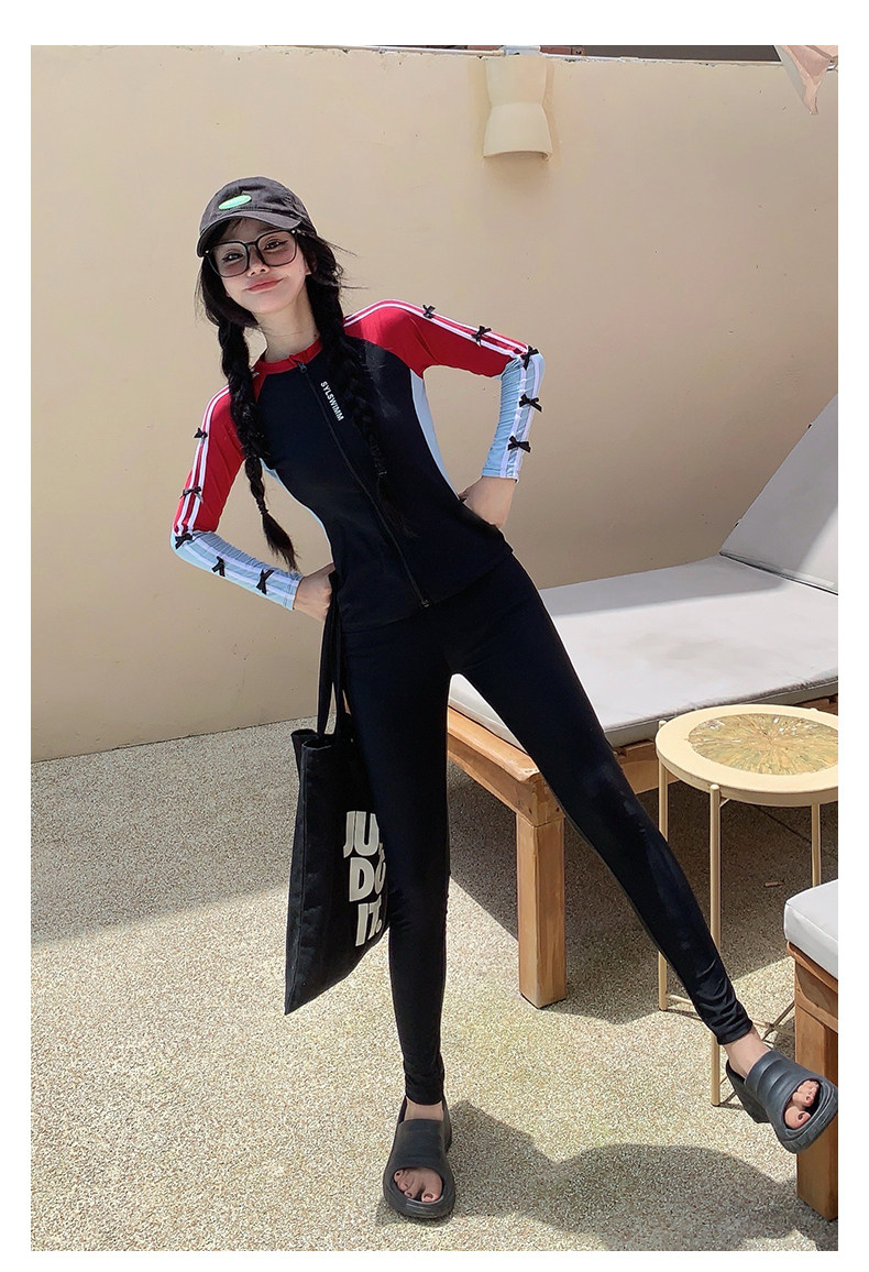 Раздельный купальник, лонгслив, быстросохнущие штаны, по фигуре, защита от солнца