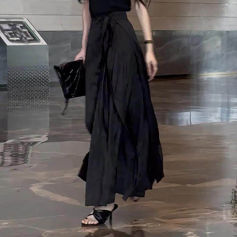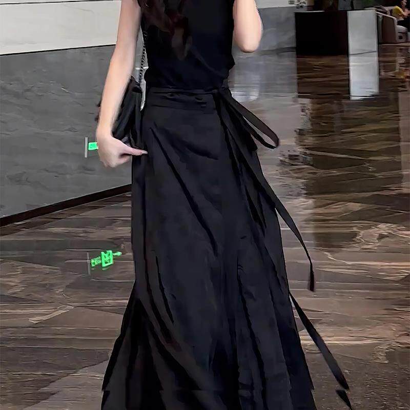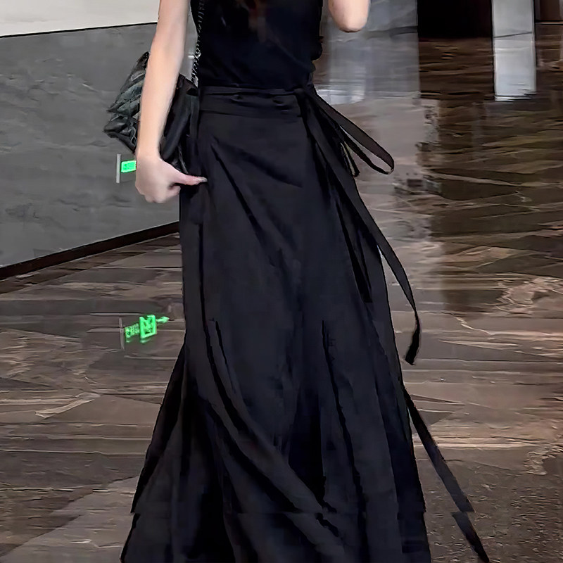 Черная модная приталенная длинная летняя юбка, китайский стиль, яркий броский стиль, изысканный стиль, средней длины