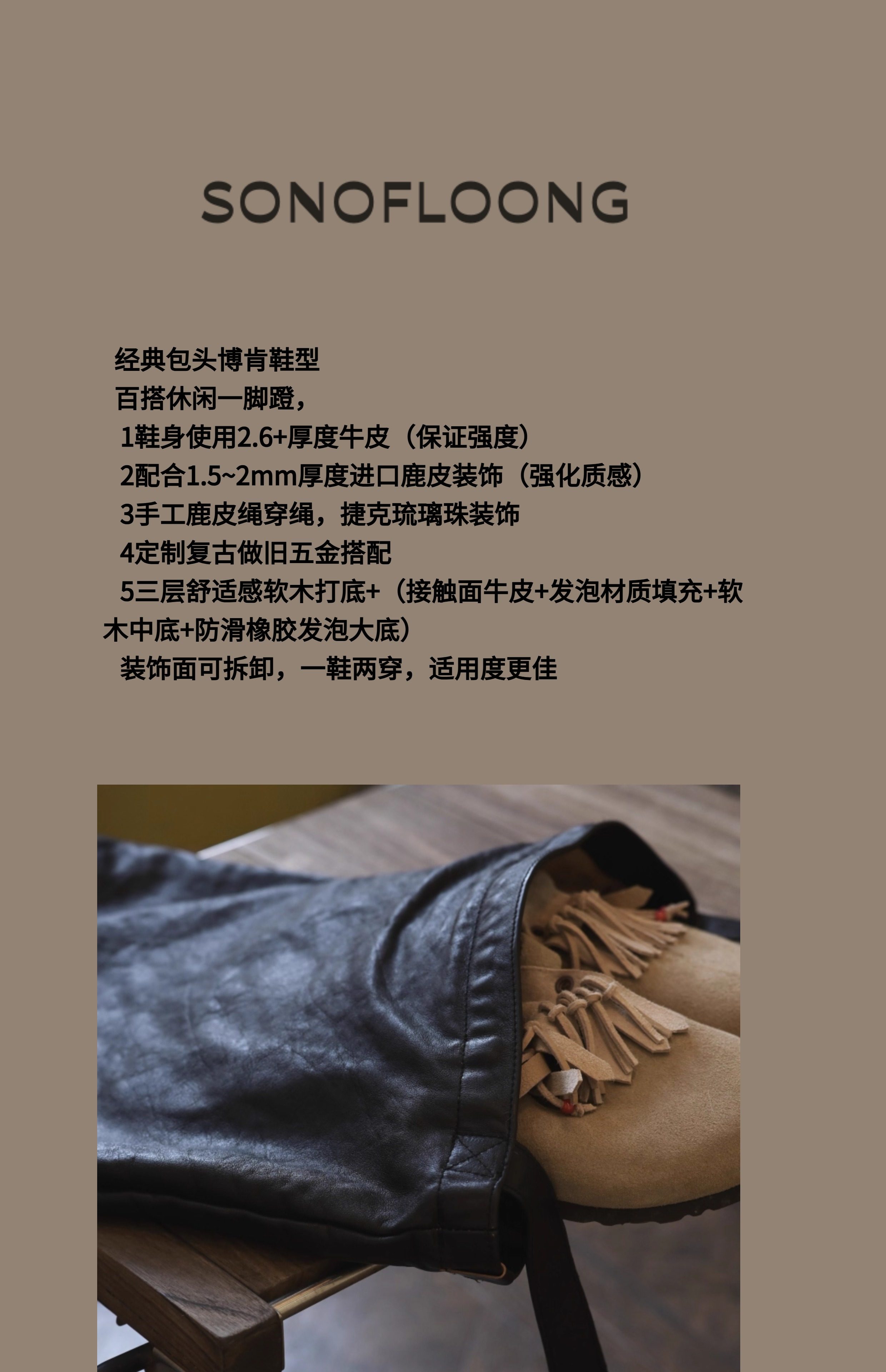 Sonofloong ручная оленя кожа Bo ken Разборка