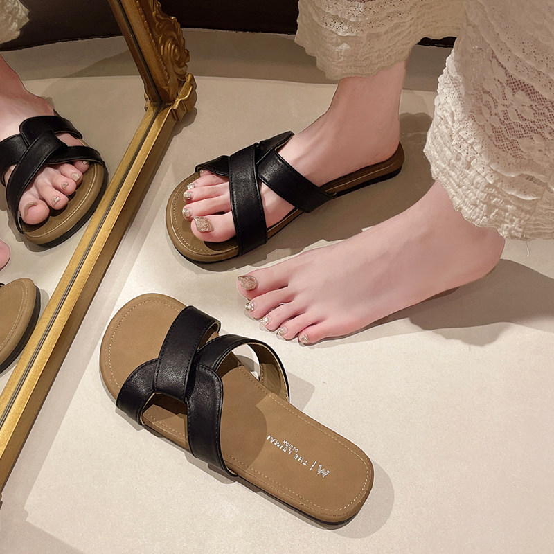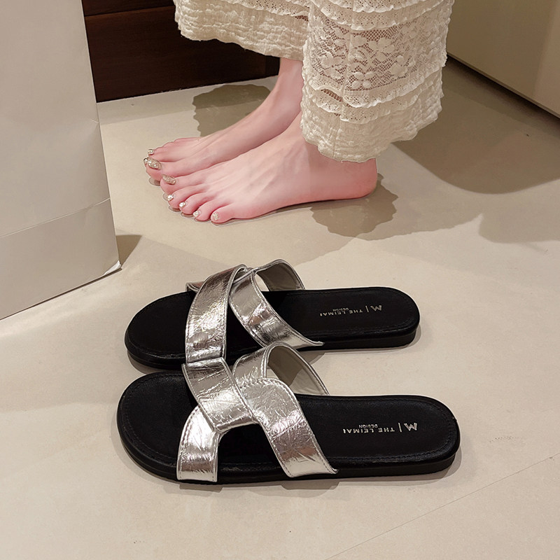 Летние тапочки, обувь, пляжные нескользящие слайдеры для отдыха, 2025 года, французский ретро стиль