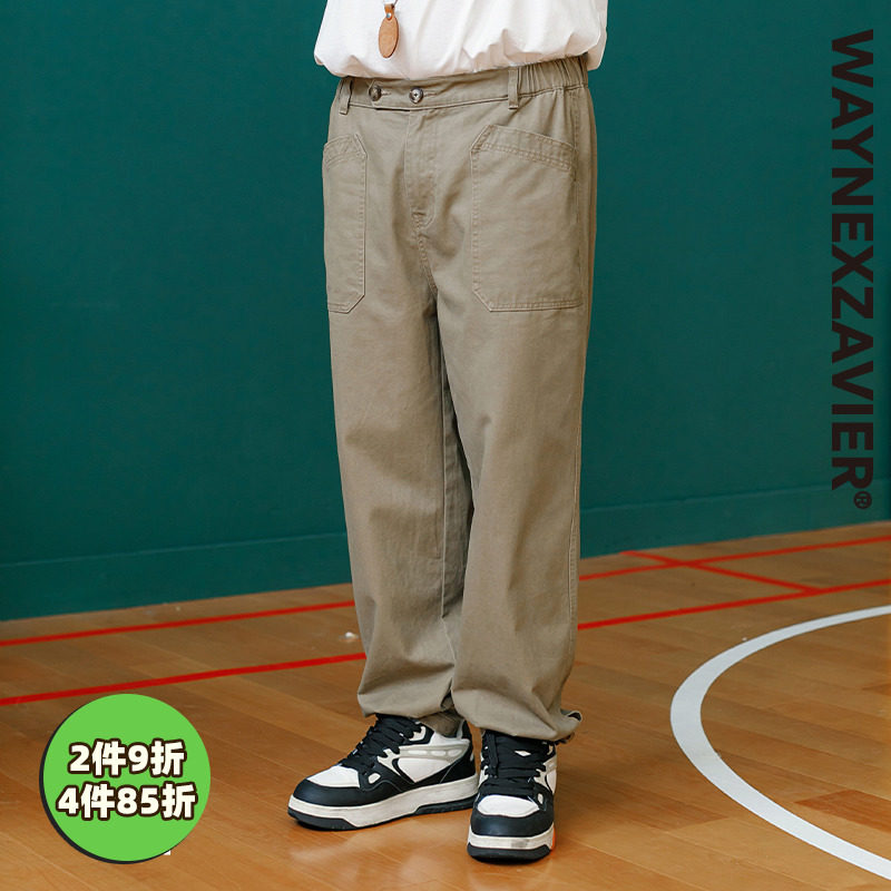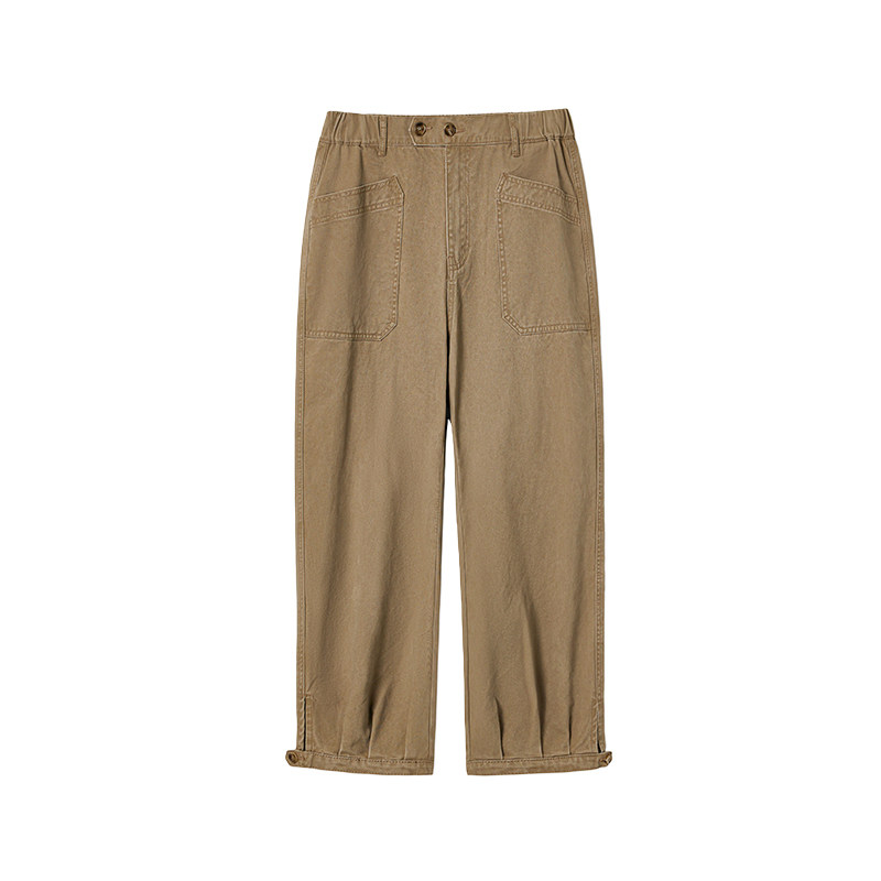 Ретро осенние эластичные хаки штаны, большой размер, оверсайз, свободный прямой крой