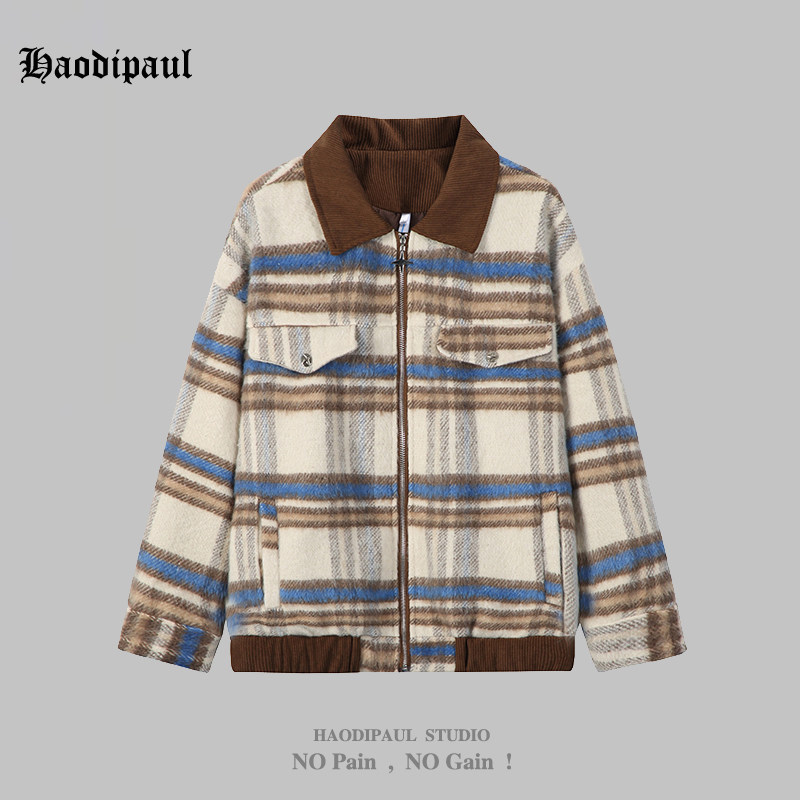 Ретро шерстяная куртка для отдыха подходит для мужчин и женщин, в американском стиле, оверсайз
