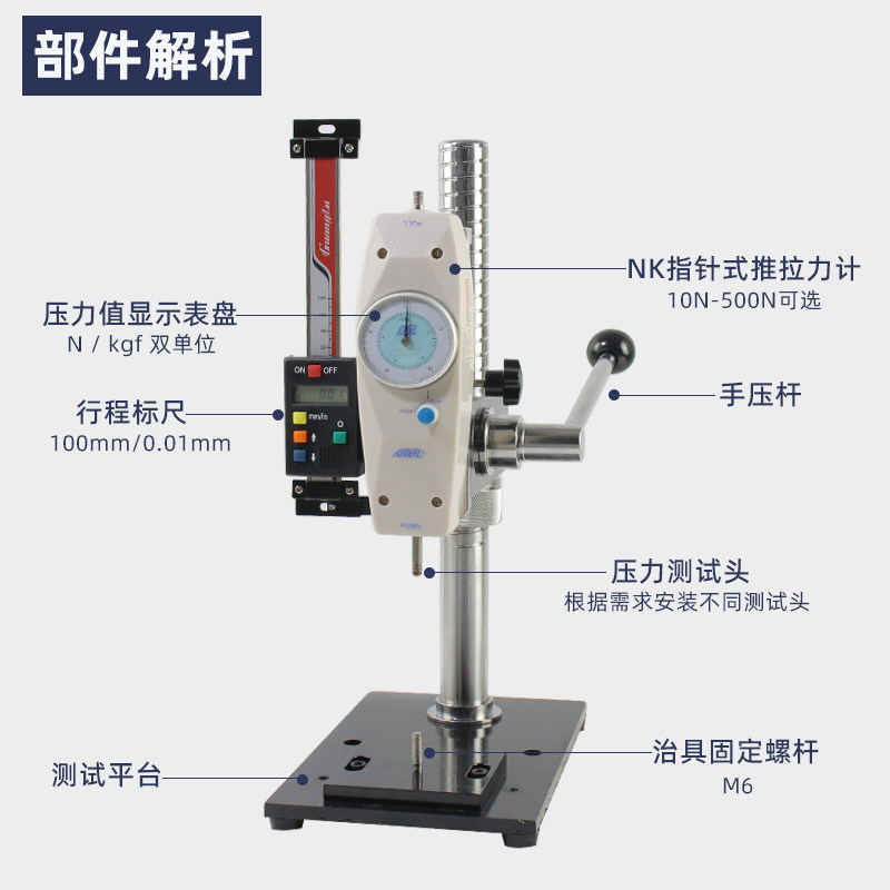 Вертикальный ручной пресс HPA, испытательный стенд под давлением с линейкой, указатель Aigu, двухтактный измеритель силы, машина для испытания на давление пружины