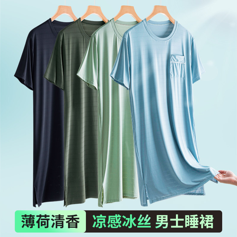 Мятная шелковая пижама, тонкий длинный банный халат, оверсайз, средней длины, короткий рукав, изысканный стиль