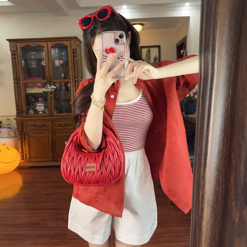 Красный лонгслив, летняя рубашка, шифоновая куртка, французский стиль, защита от солнца, 2024 года, городской стиль, свободный крой