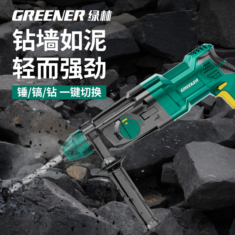 Электрическая ударная дрель Green Forest, ударная дрель, ударная дрель для бытовой стены, электрический кирка, двойная, многоцелевая, легкая электрическая ударная дрель по бетону