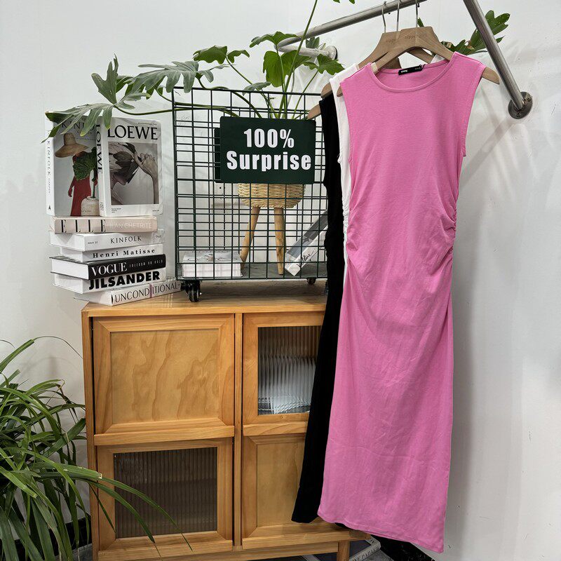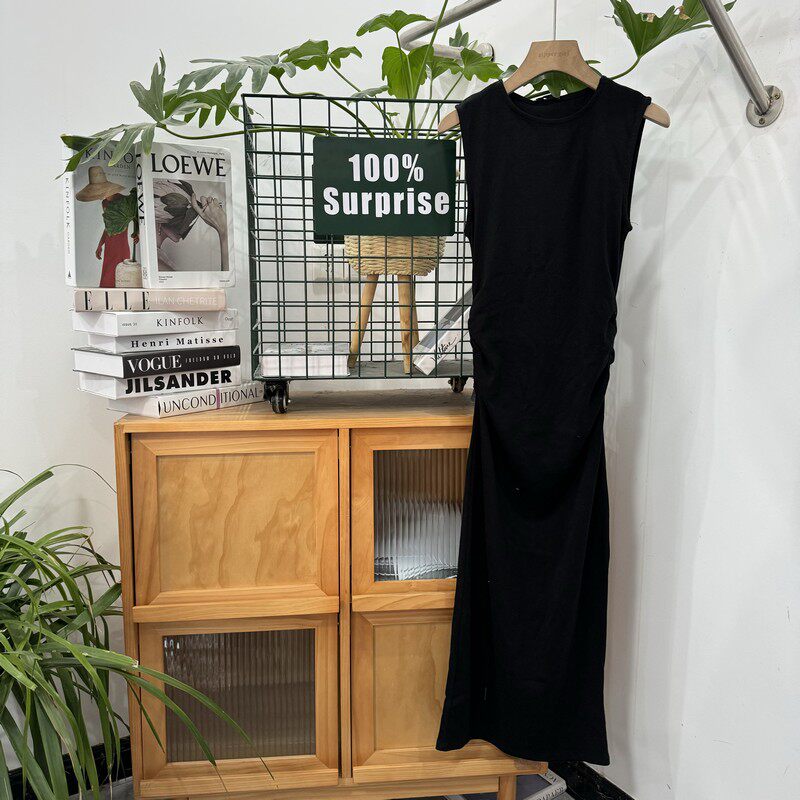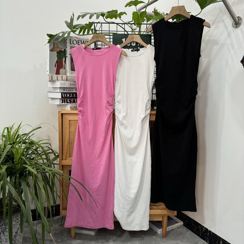 Длинное платье без рукавов с круглым воротником, комплект, средней длины, облегающий крой