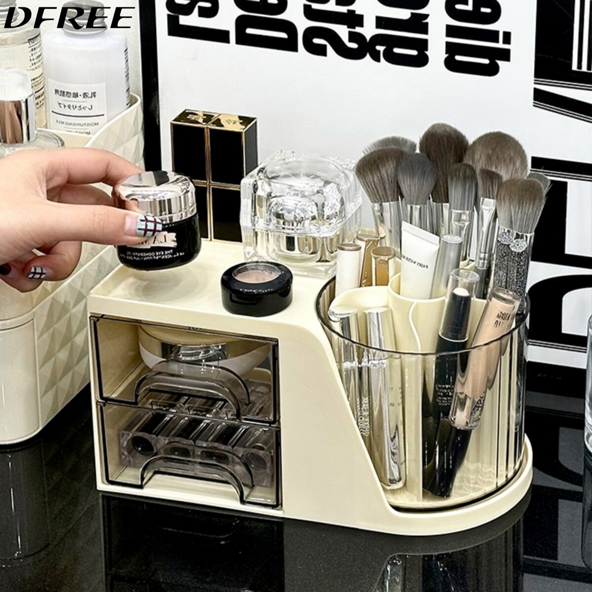Крутящаяся косметическая коробка для хранения, настольный туалетный столик, помада, кисть, универсальная система хранения