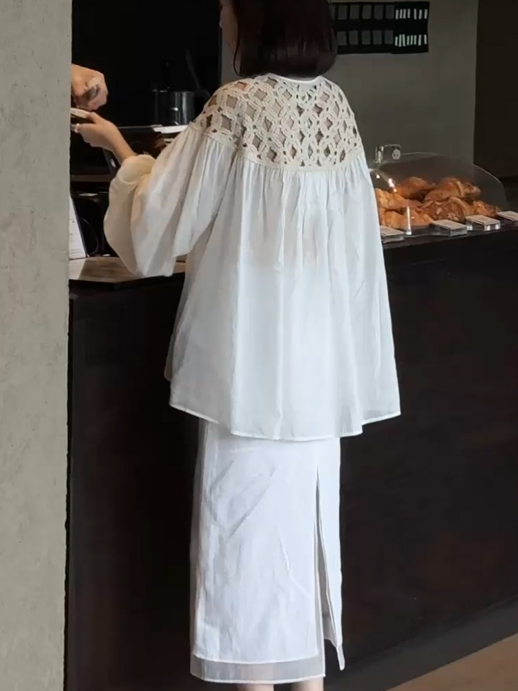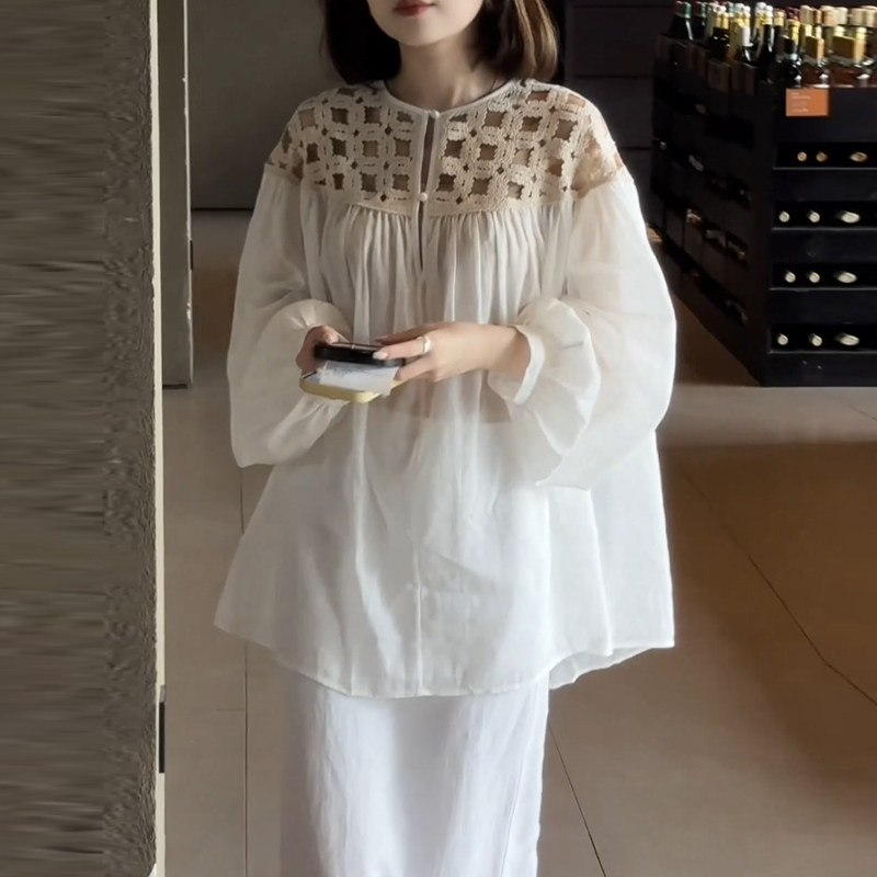 Белая летняя дизайнерская рубашка с круглым воротником, французский стиль, оверсайз