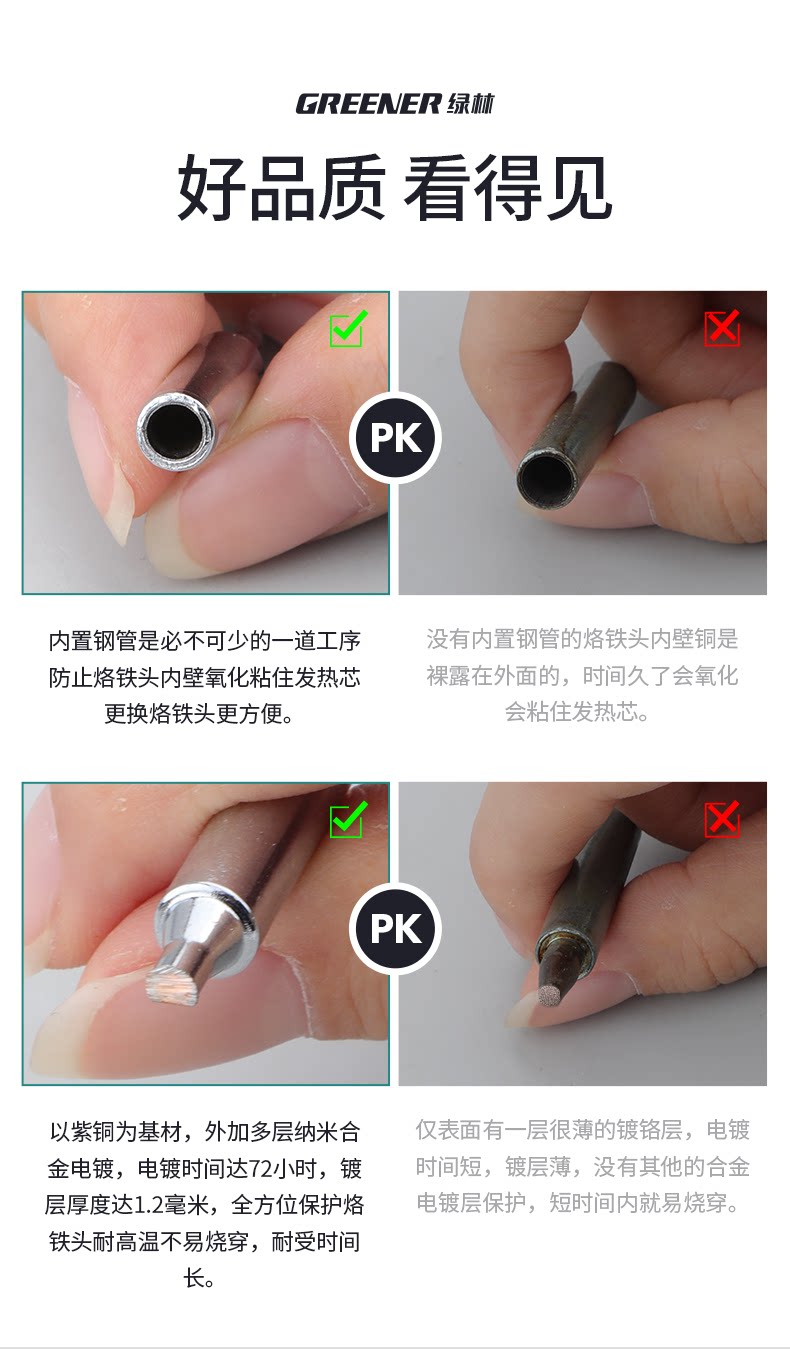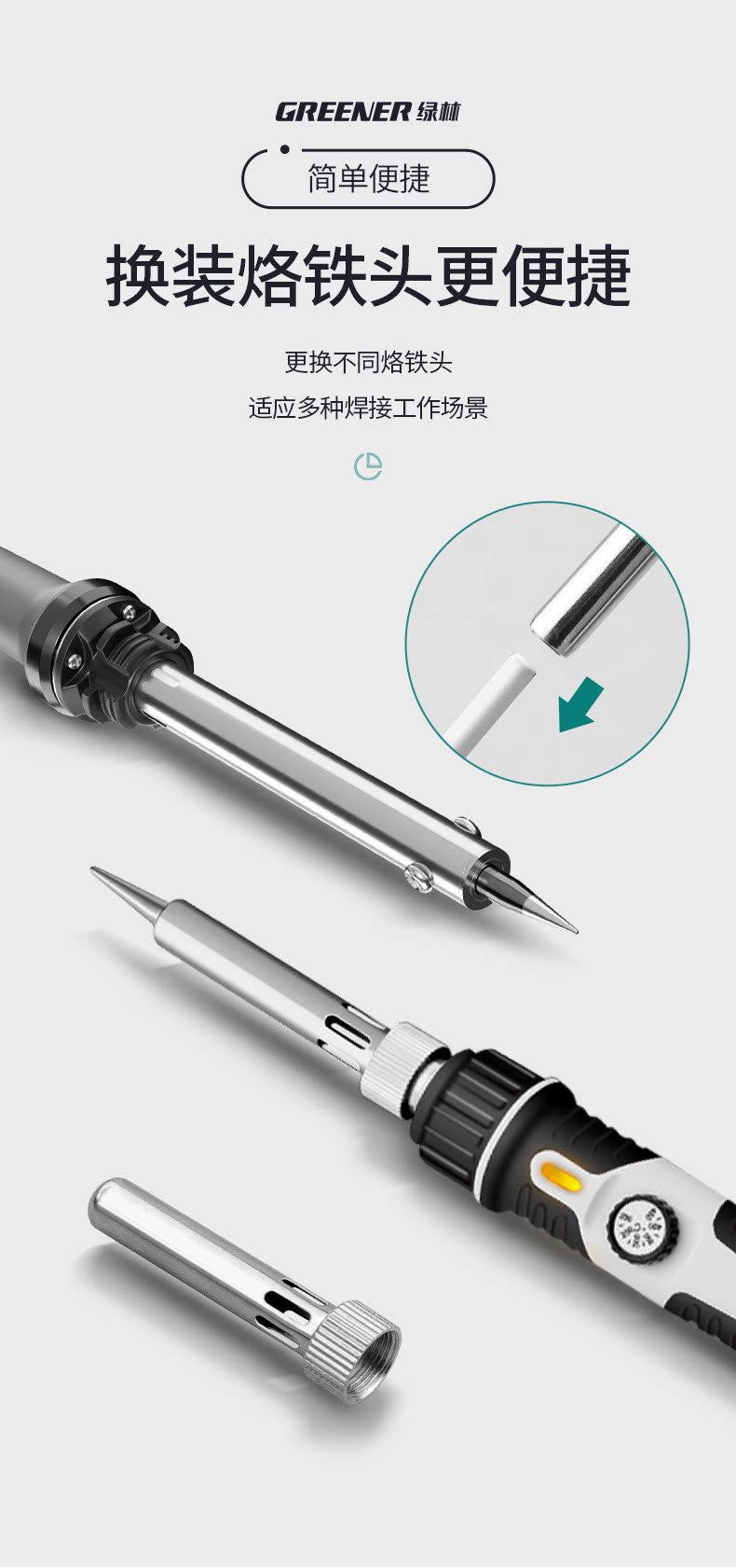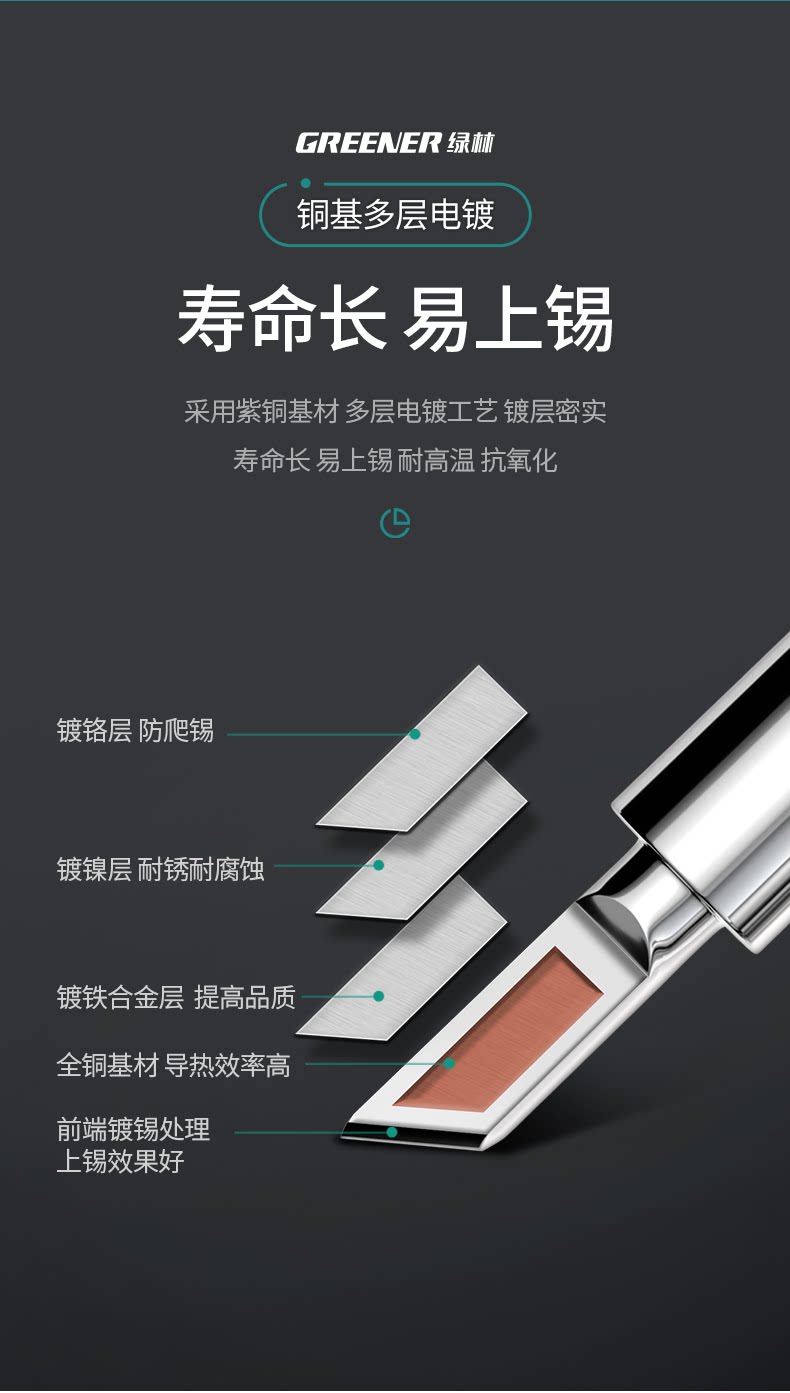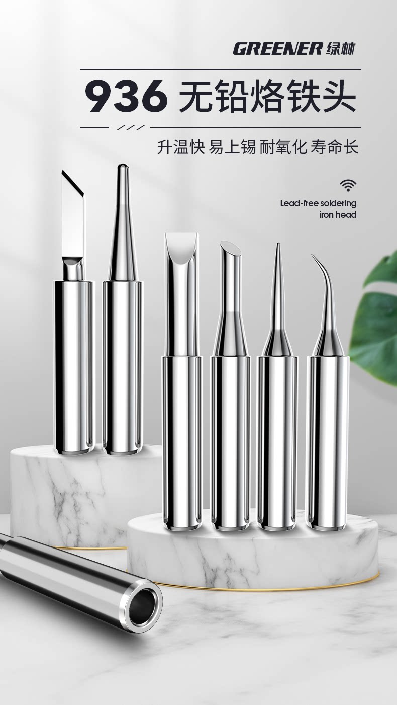 Головка паяльника Green Forest с постоянной температурой, электрическая паяльная головка, универсальная, хромированная железная головка с внутренним нагревом 936, изогнутый наконечник, электрическая паяльная головка