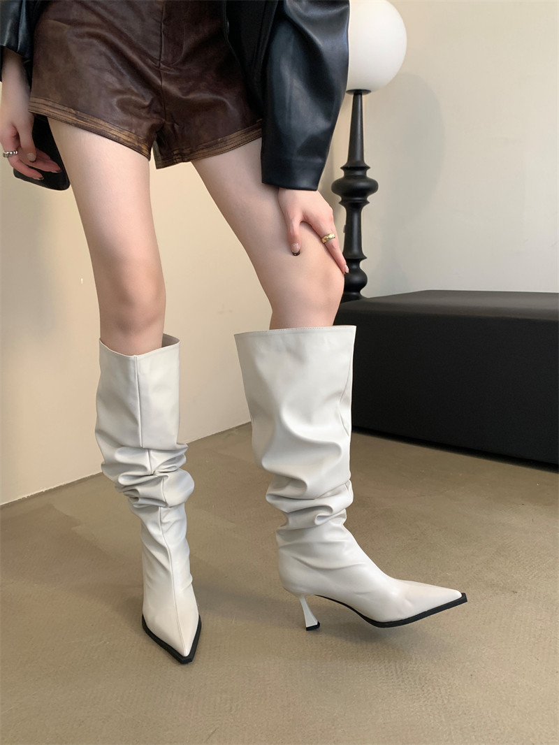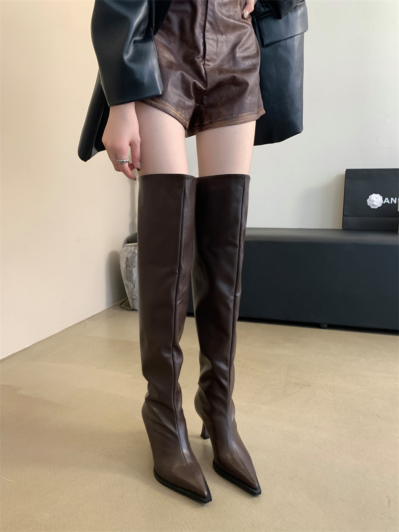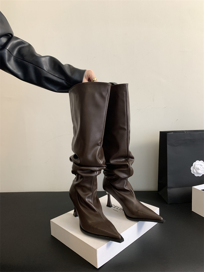 Демисезонные зимние ботинки на высоком каблуке, высокие сапоги с заостренным носом, популярно в интернете, по фигуре