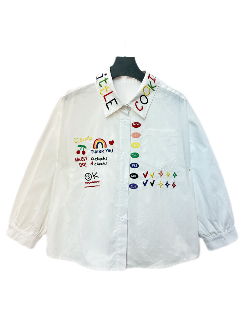 Детский комплект, трикотажный шерстяной жилет, рубашка, джинсы, с вышивкой