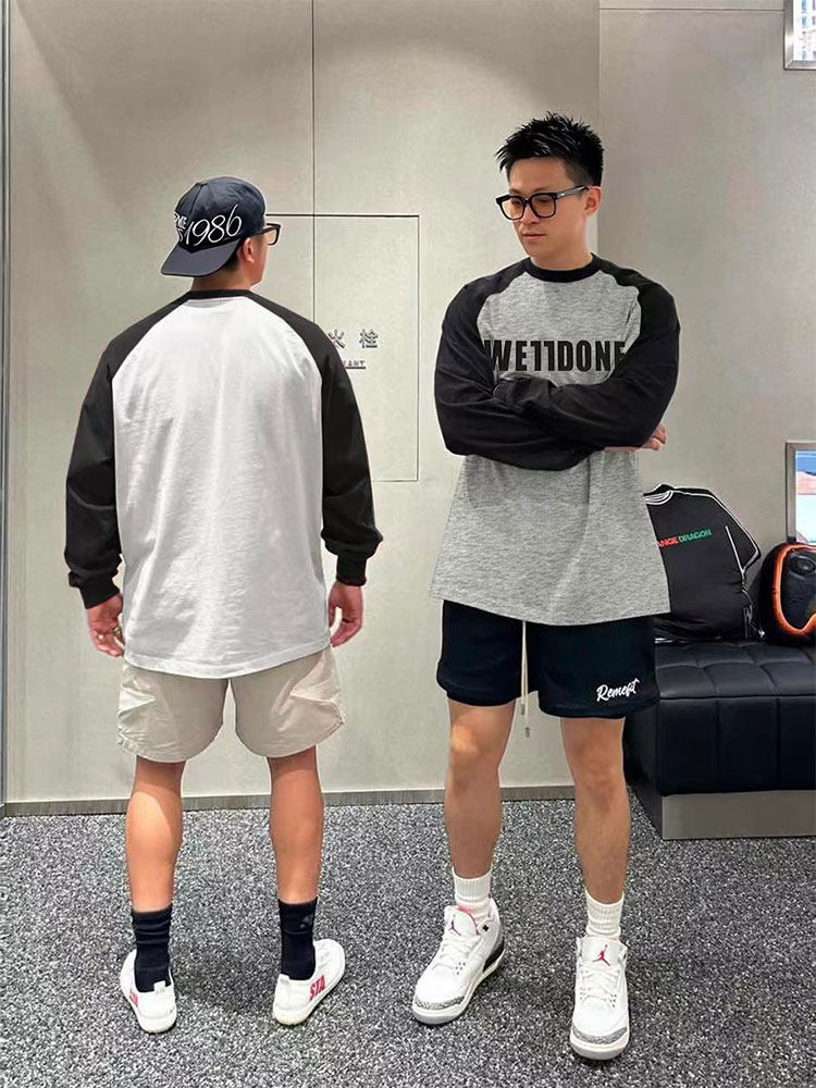 WE11DONE SHARKFACE модный бренд WELLDONE американская нишевая пара из чистого хлопка с длинными рукавами и рукавами реглан
