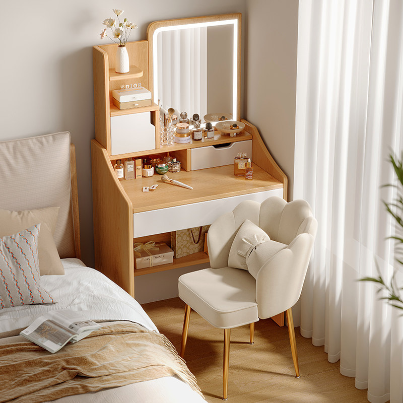 Маленькая спальня с туалетным столом минималистской современной маленькой квартиры прикроватный шкаф для макияжа.