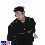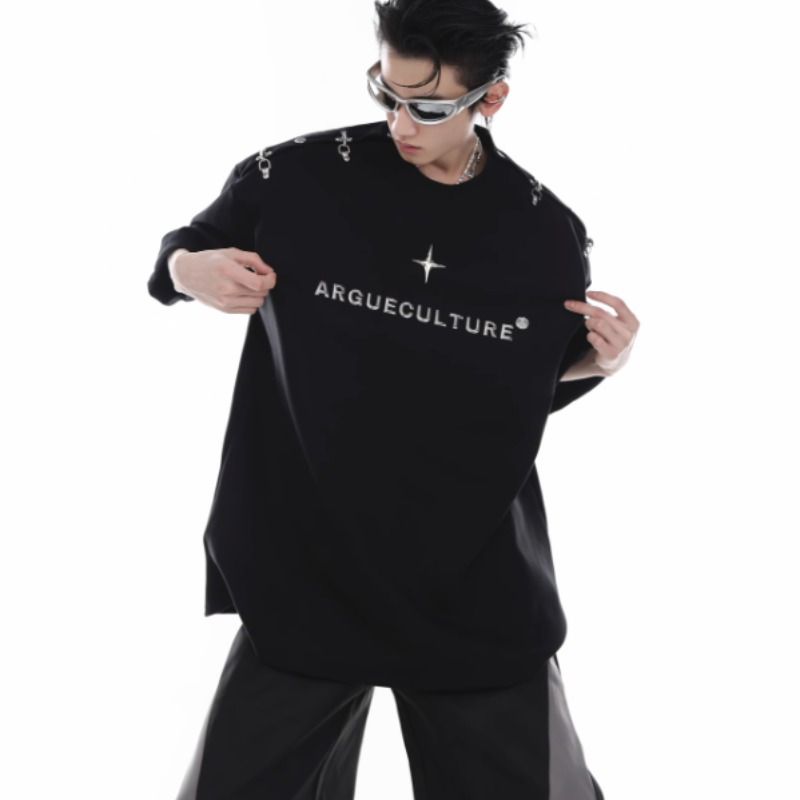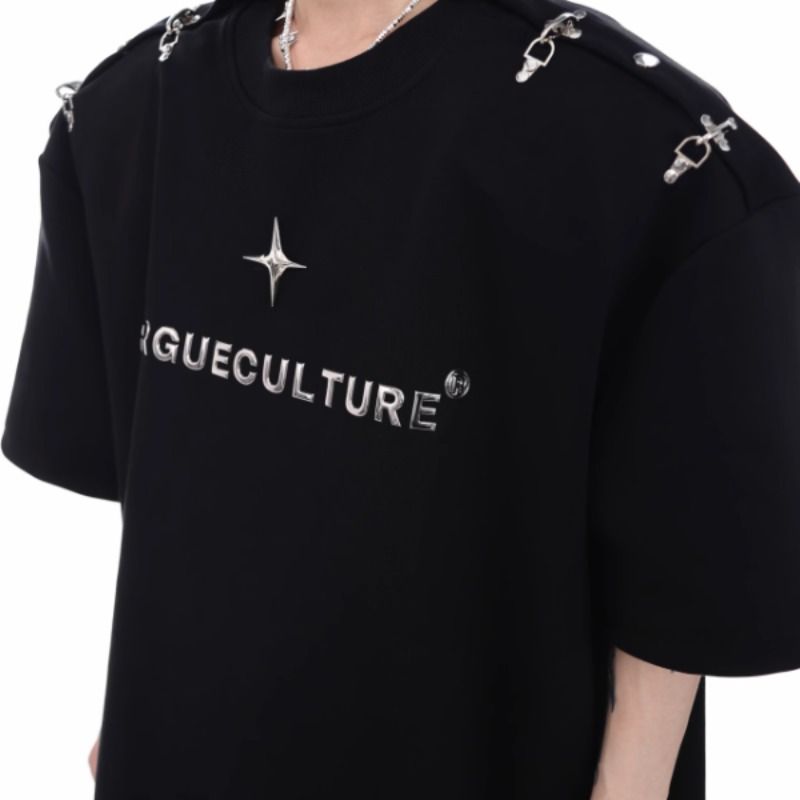 Оригинальный металлический дизайнерский самолет, трехмерные наплечники, футболка, новая коллекция, открытые плечи, тренд сезона, короткий рукав