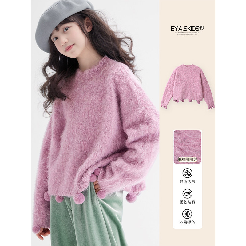 EYAS Длинный фугу мяч с круглым воротником, демисезонный модный трикотажный свитер