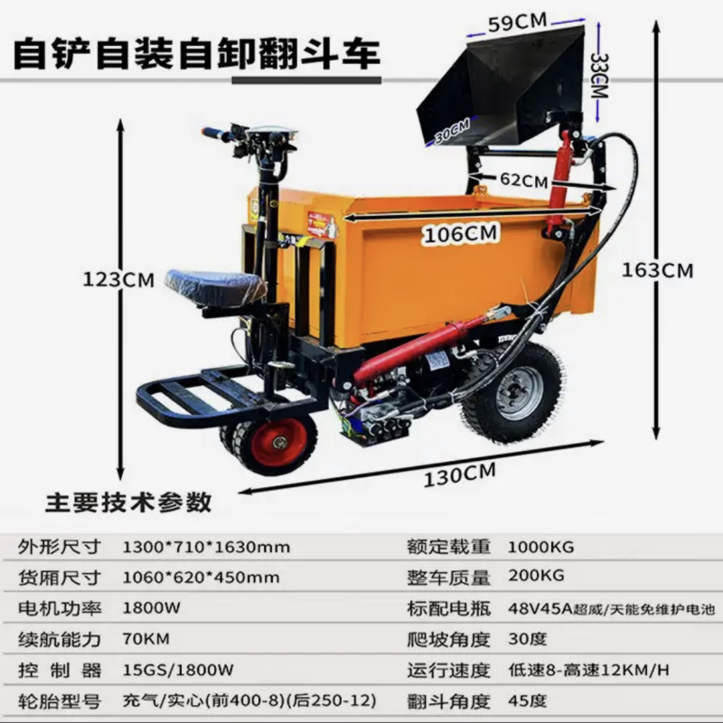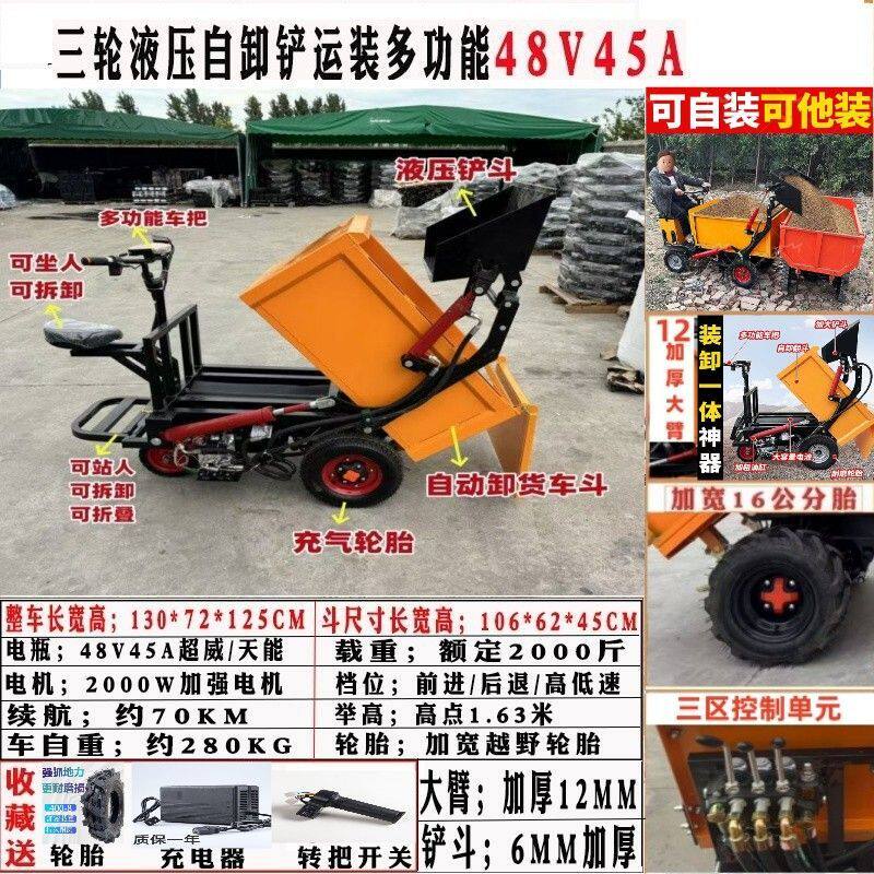 Самоупользование, самозагрузка и сброс интегрированной строительной площадки Электрическая самосвальная площадка Строительная площадка Трицикл Песчаной грузовик