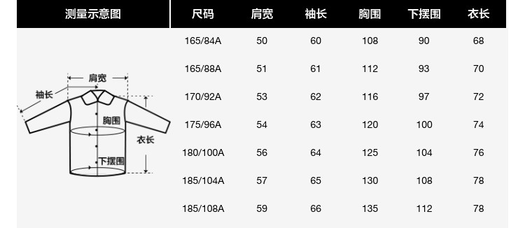 | Размер: | 165/88A (S) размер Азии, 170/92A (M) размер Азии, 175/96A (L) азиатский размер, 180/100a (XL) размер Азии, 185/104A (xxl) размер Азии, 185/108a (xxxl) азиатский размер |