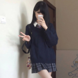 花千猪 Оригинальный свитер, многоцветная трикотажная студенческая юбка в складку