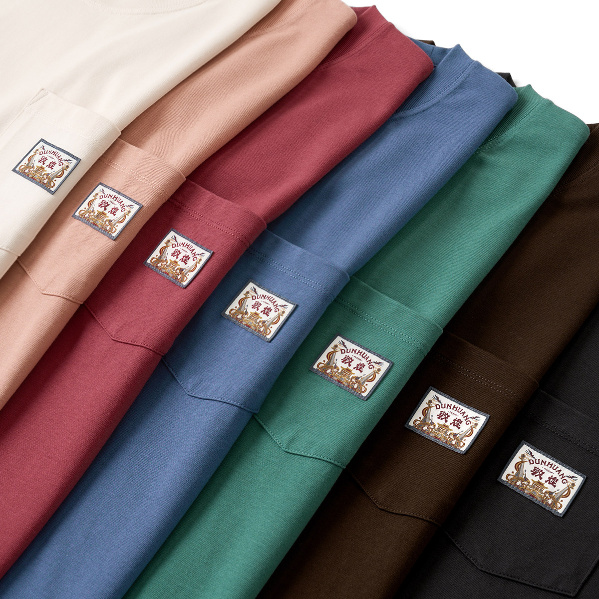 Simwood Мужская одежда Джейн Вуд [Standard Loose] 310G Long Velvet Cotton Dunhuang Series серии Национальный ветер с коротким ветром T -Shirt