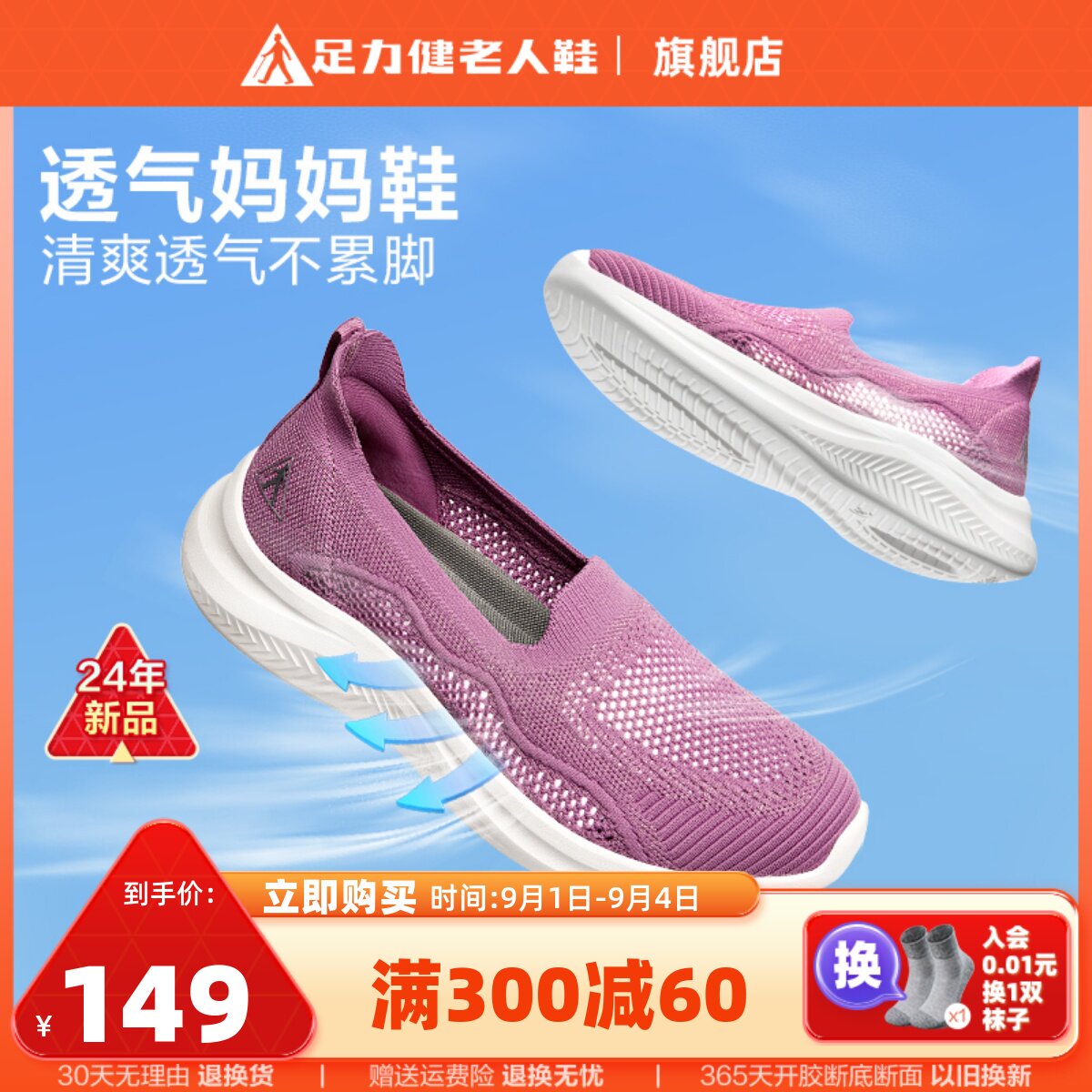 足力健 Летняя удобная и дышащая спортивная обувь для пожилых людей, обувь для мам среднего и пожилого возраста, удобные прогулочные туфли на мягкой подошве.