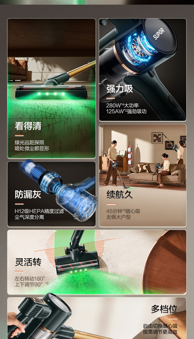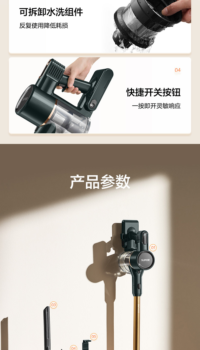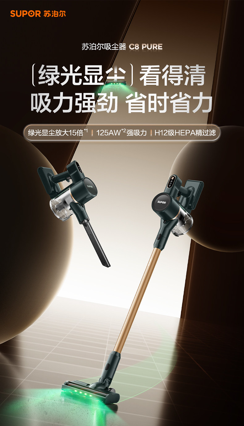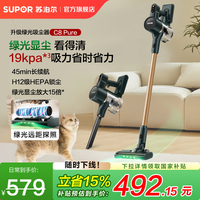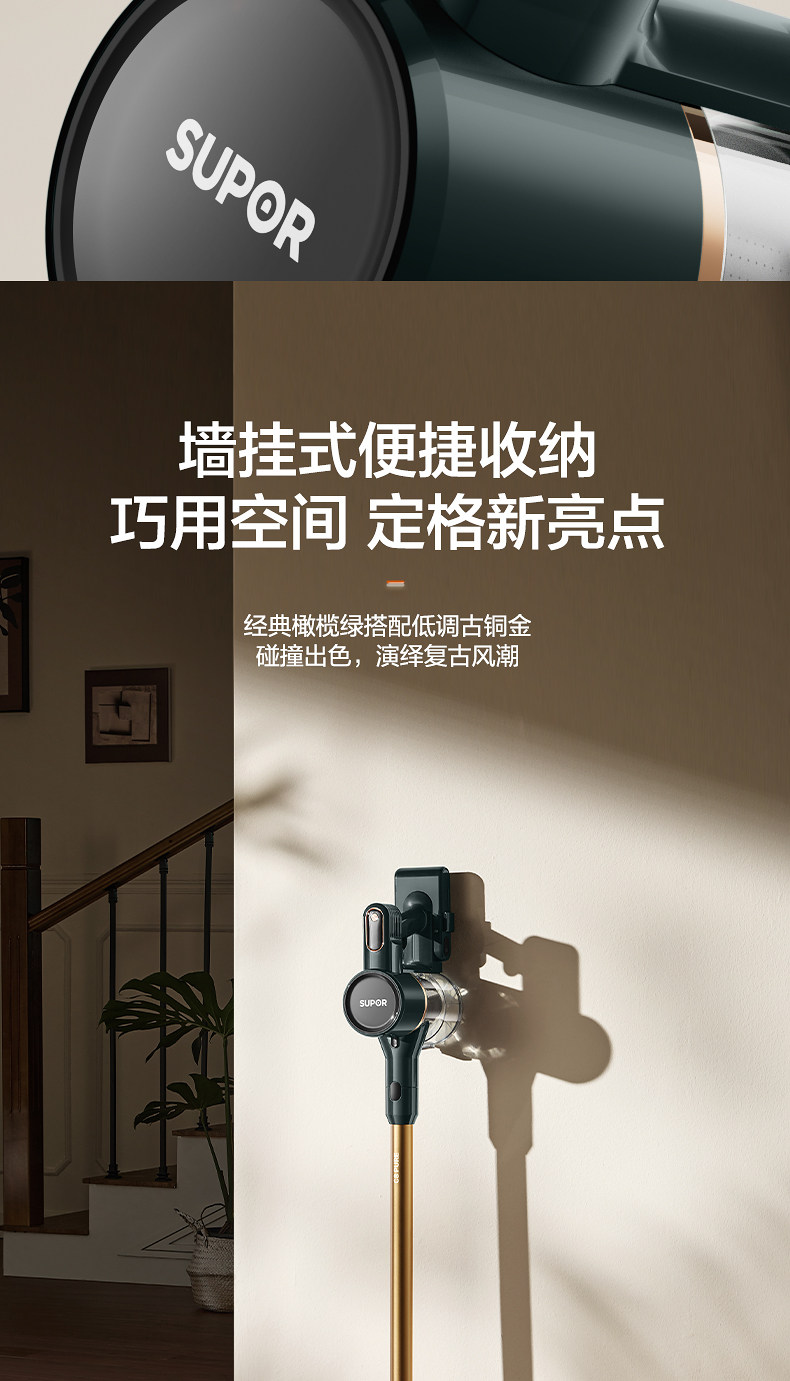 Supor 2025 Новый беспроводной вакуумный очиститель зеленого света Dust Display Home Homemheld Small High Sursction Song High Outmer