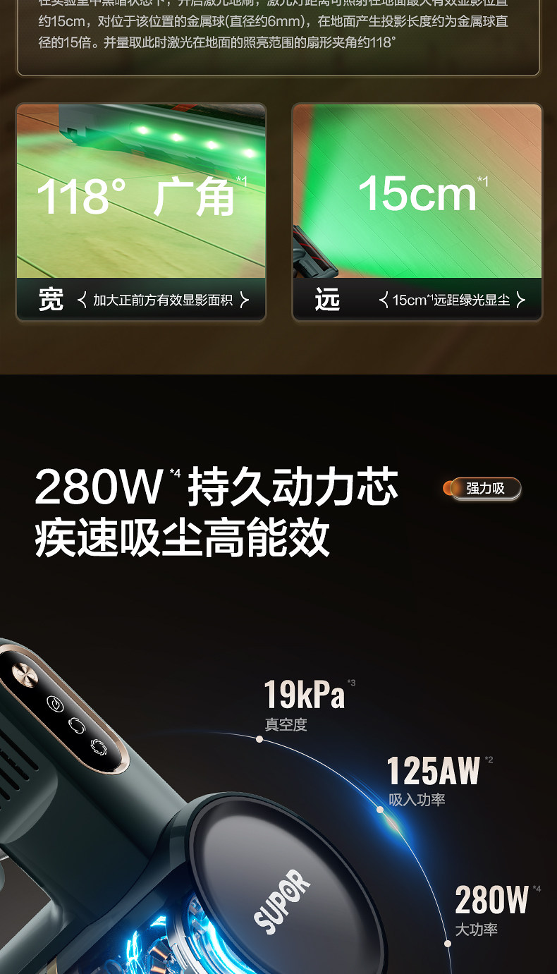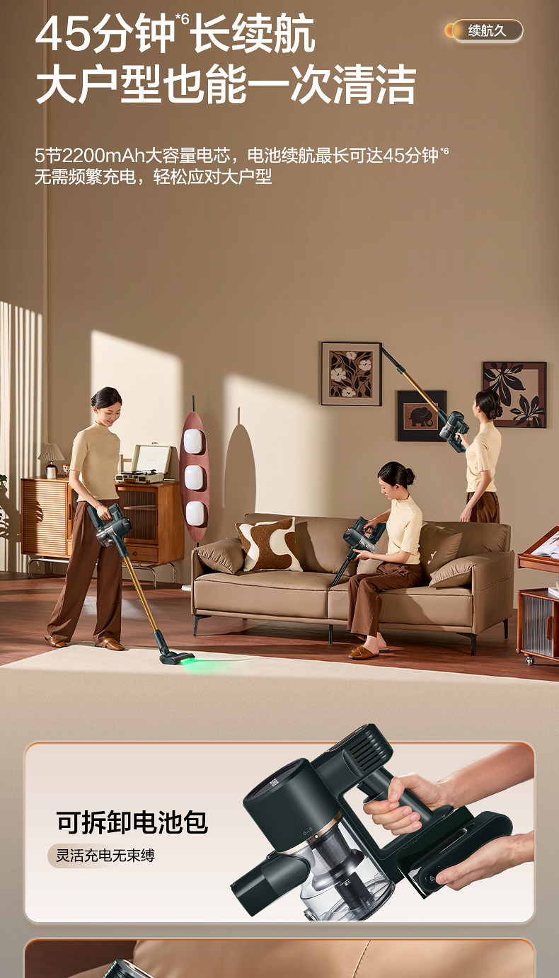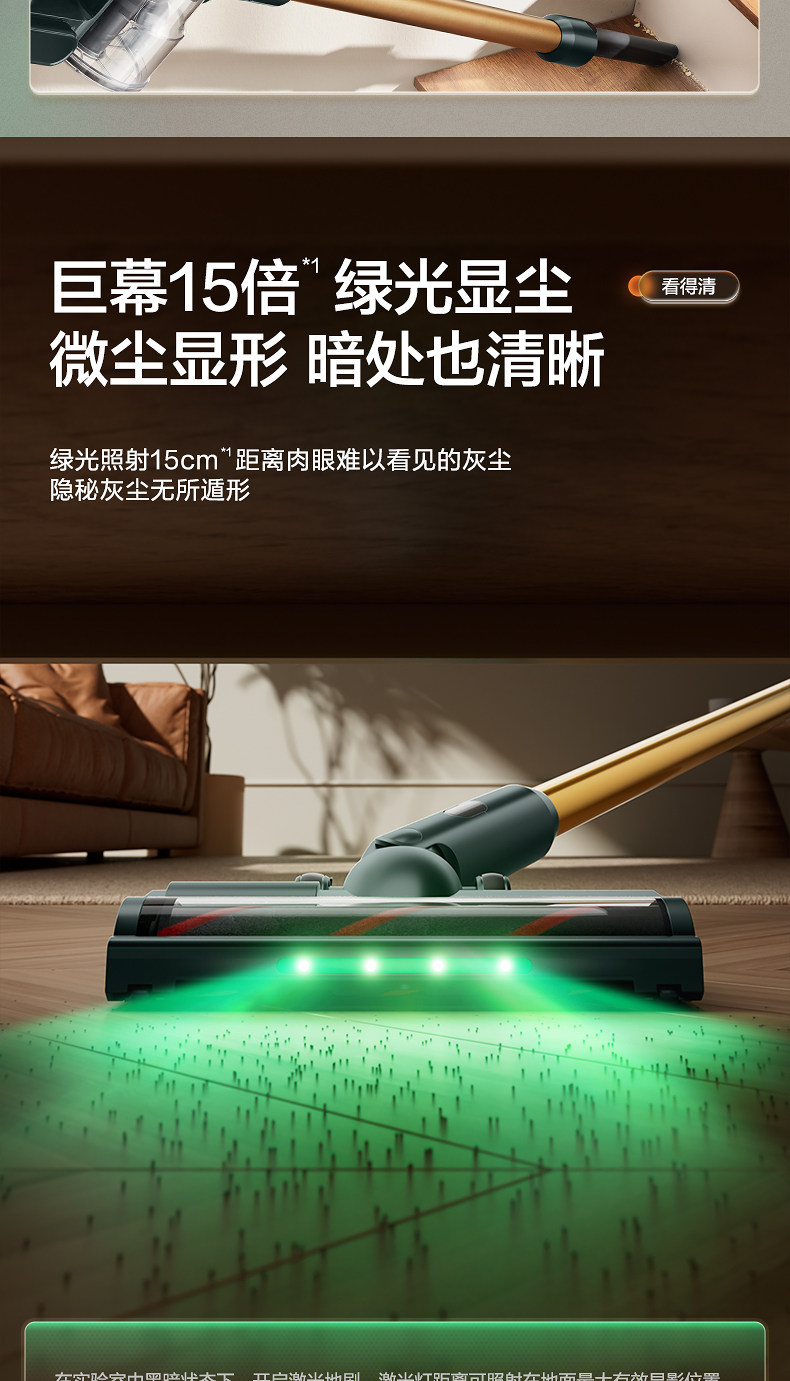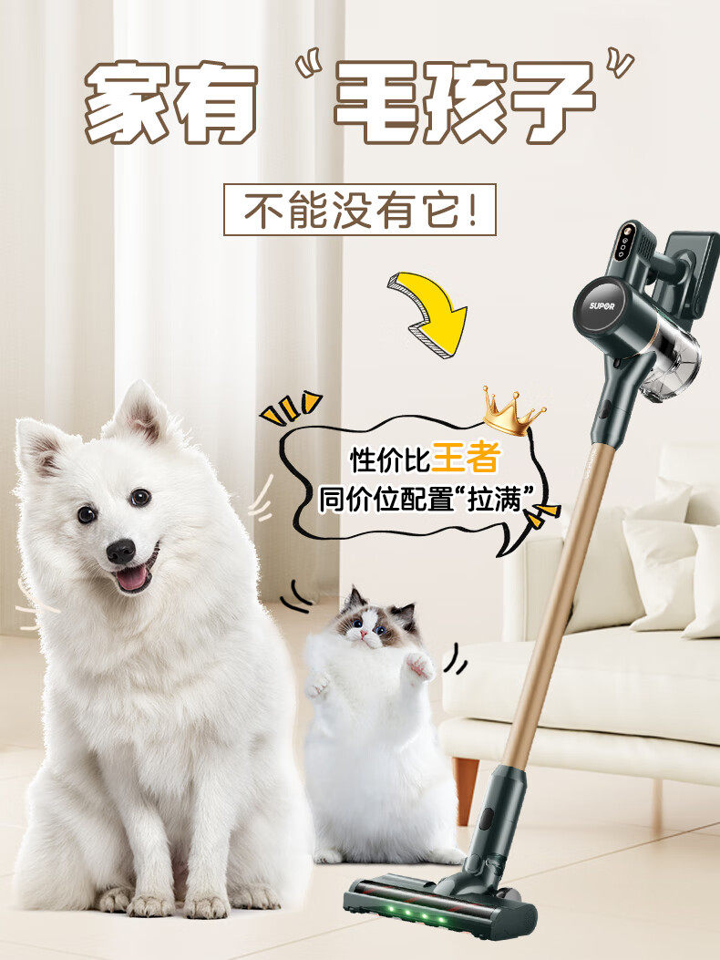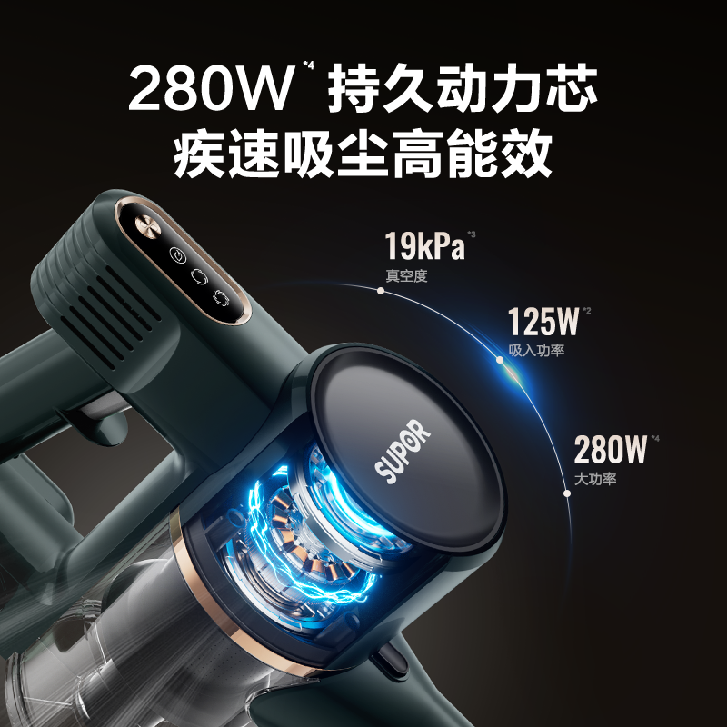 Supor 2025 Новый беспроводной вакуумный очиститель зеленого света Dust Display Home Homemheld Small High Sursction Song High Outmer