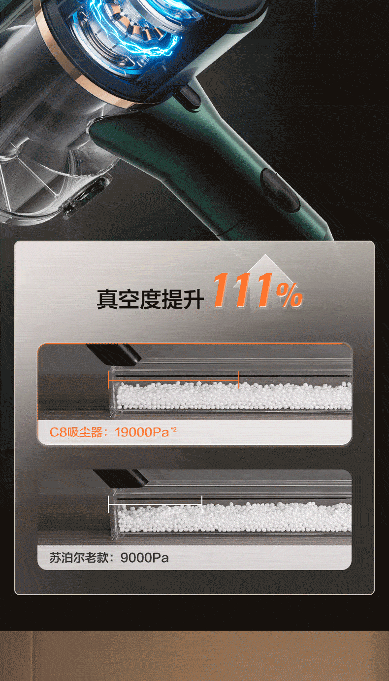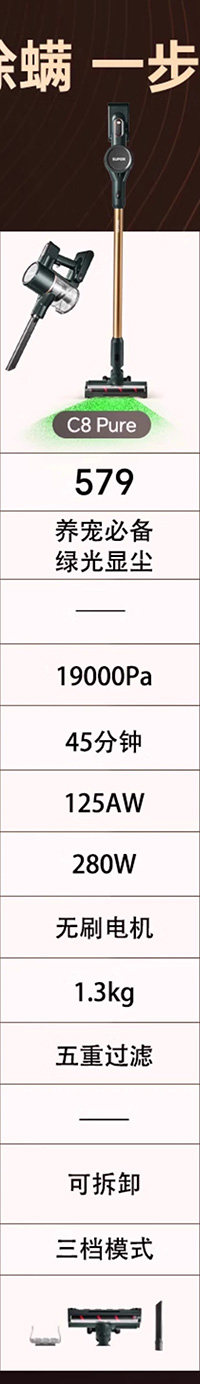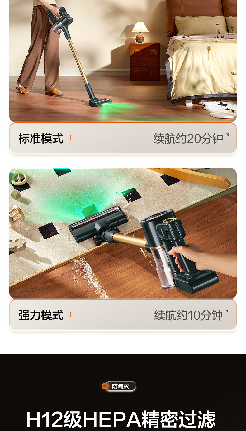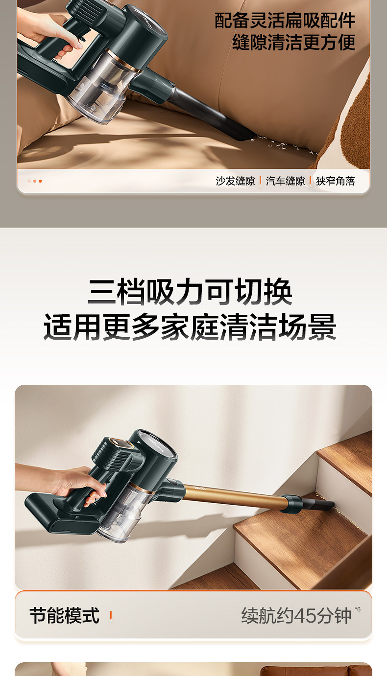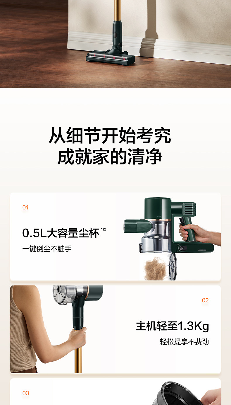 Supor 2025 Новый беспроводной вакуумный очиститель зеленого света Dust Display Home Homemheld Small High Sursction Song High Outmer
