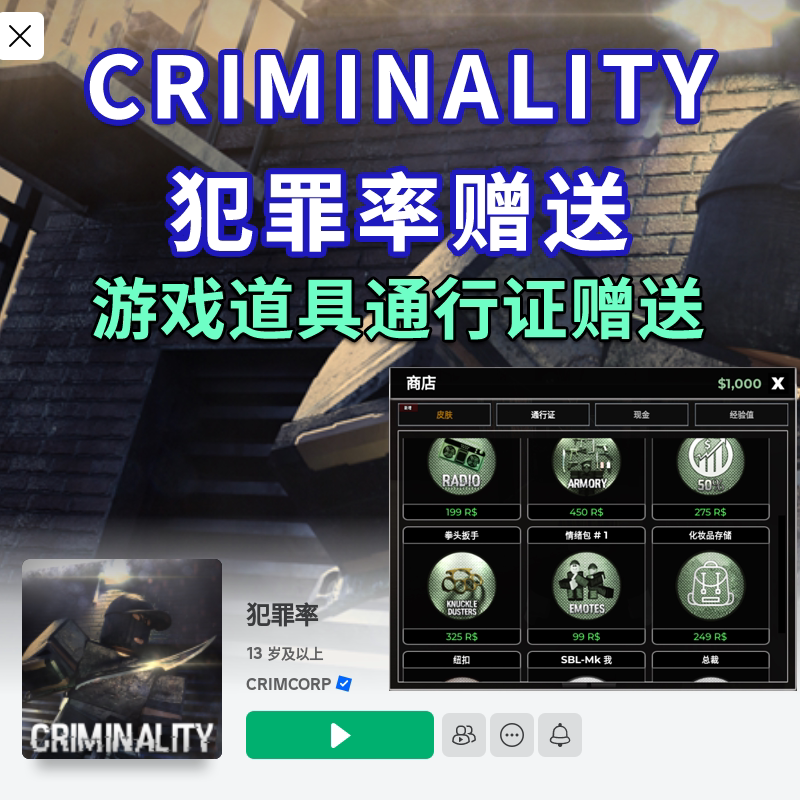 Roblox Criminality Crimet Crime Scream Pass Skin Skin Money Robox Game Gift