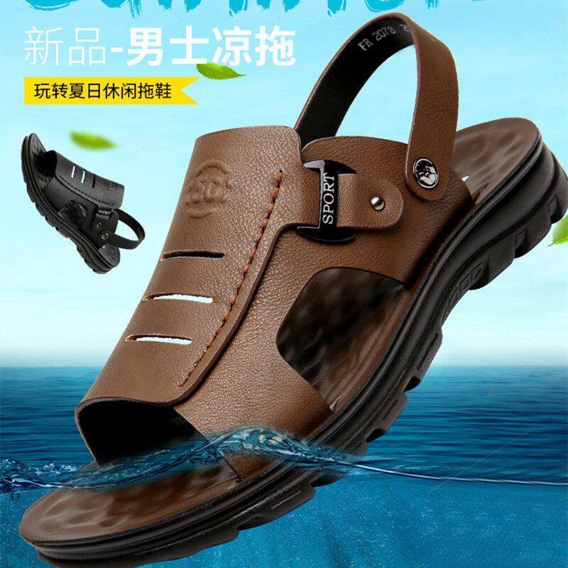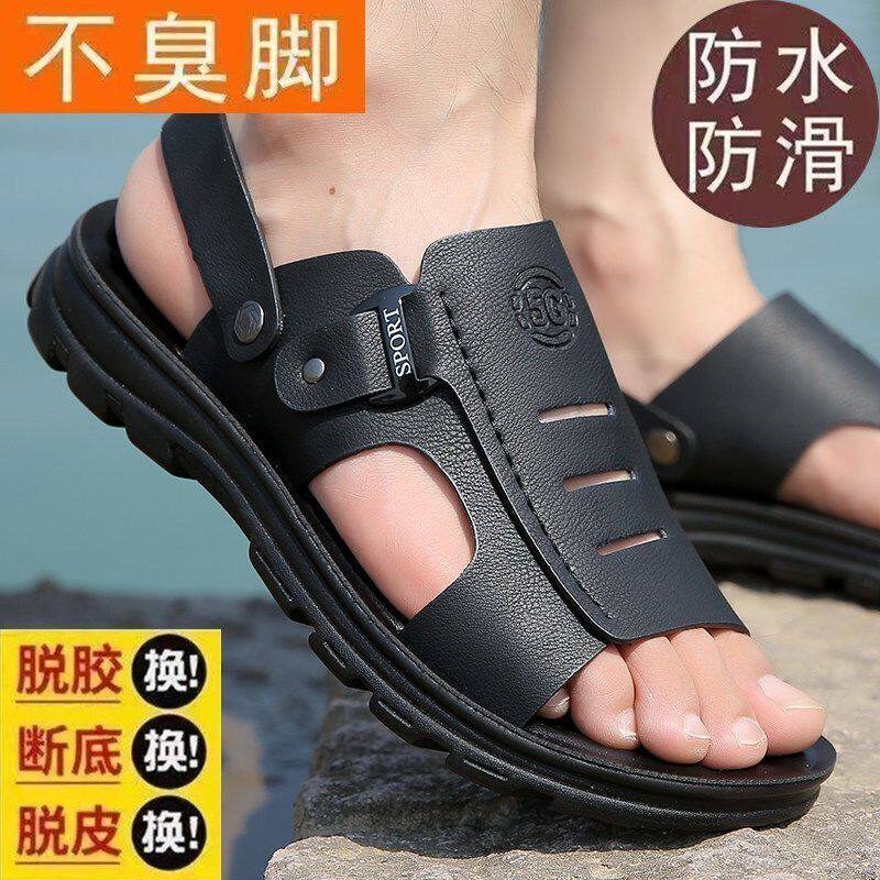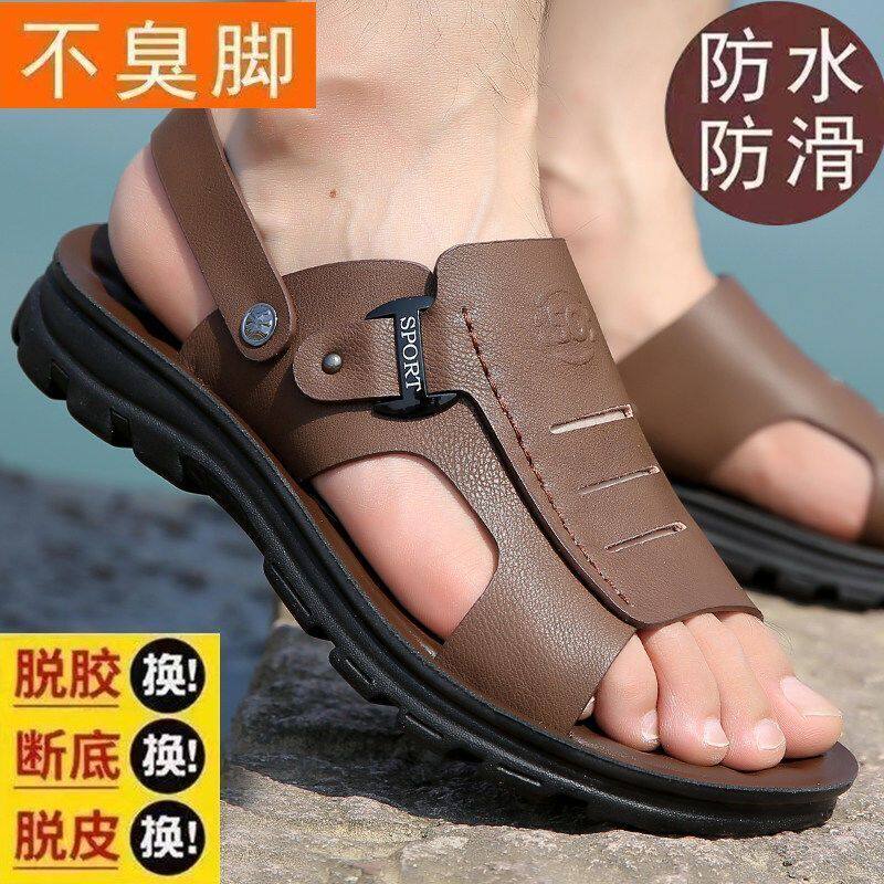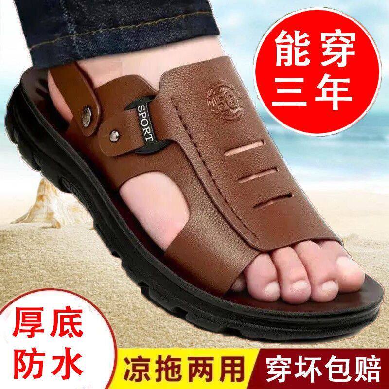 [100% натуральная воловья кожа] Специальное предложение: мужские тапочки для вождения, мужские нескользящие водонепроницаемые летние тапочки среднего возраста.