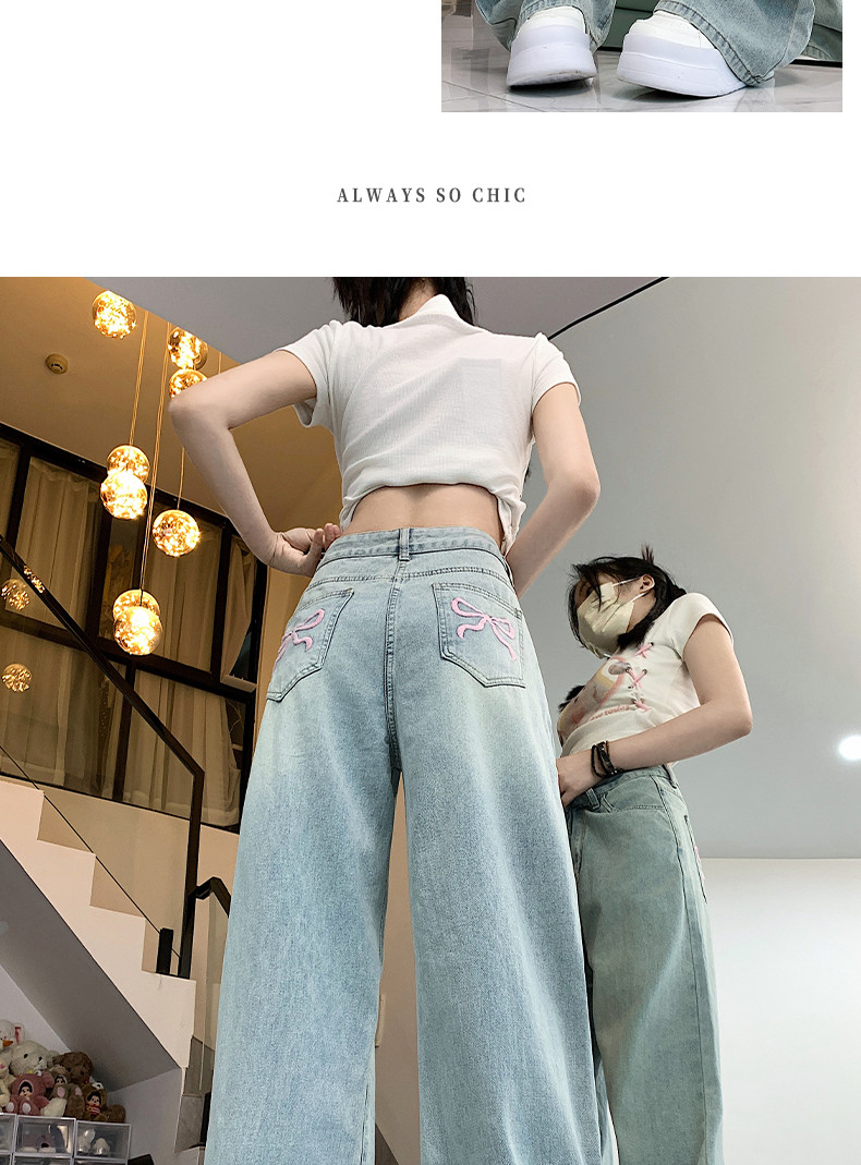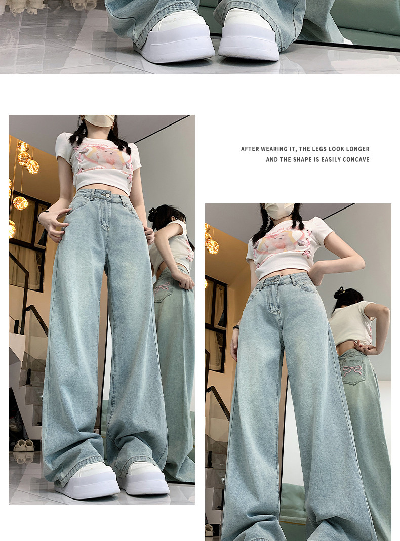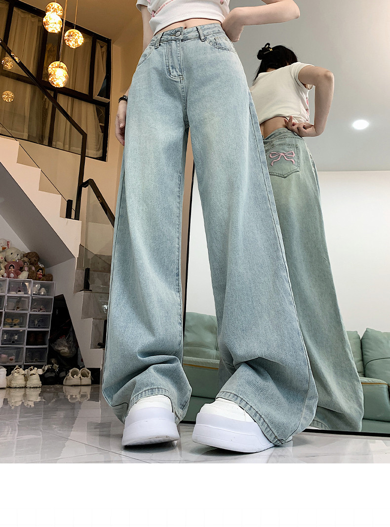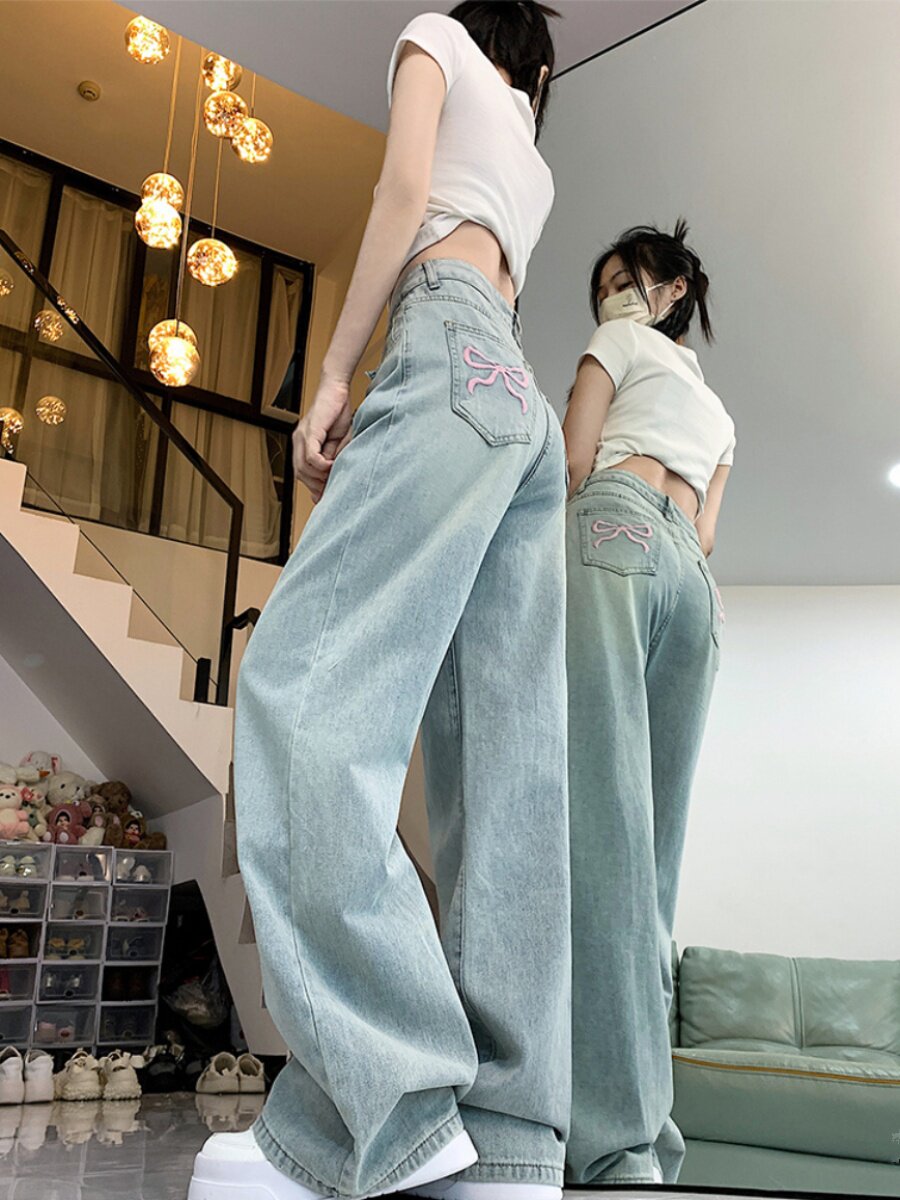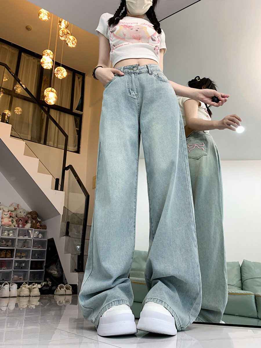 Светлые джинсы, летние штаны, высокая талия, 2024 года, оверсайз, свободный прямой крой