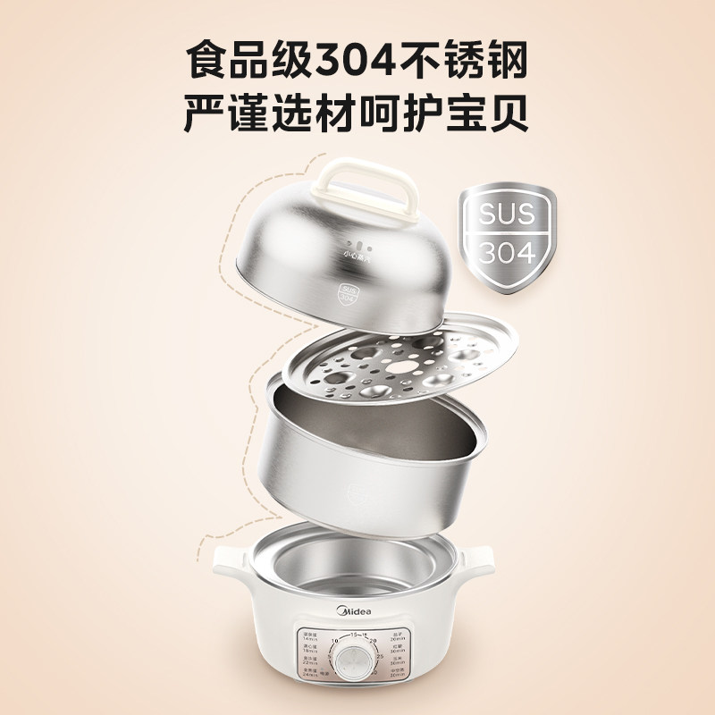 Midea Egg Bower Домохозяйство для яичных пароходов Небольшая автоматическая мощность с двойного слоя