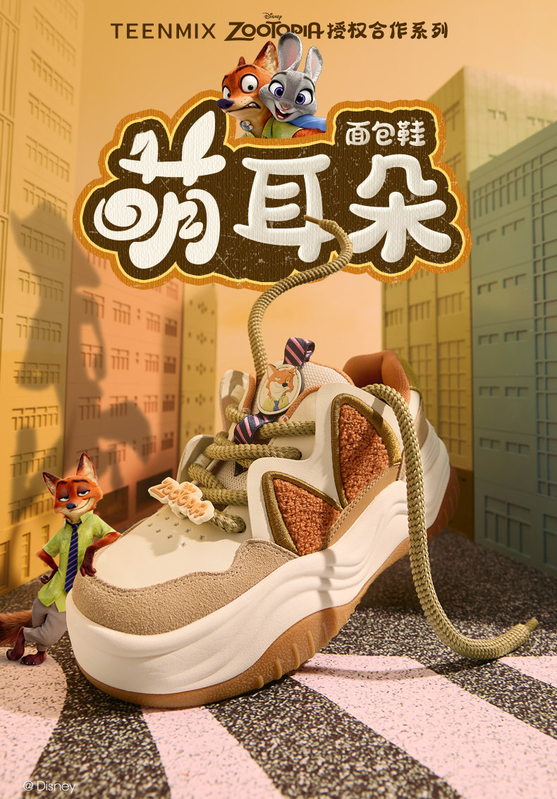 Красивые совместные бренды Wu Xintian's Zootopia, милые белые туфли с ушами, новые зимние спортивные кроссовки на толстой подошве