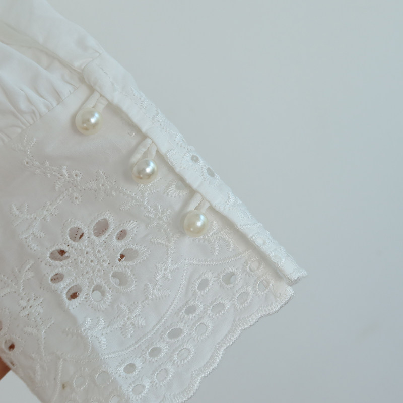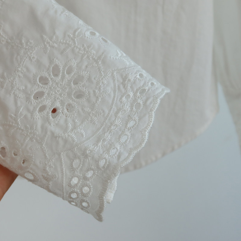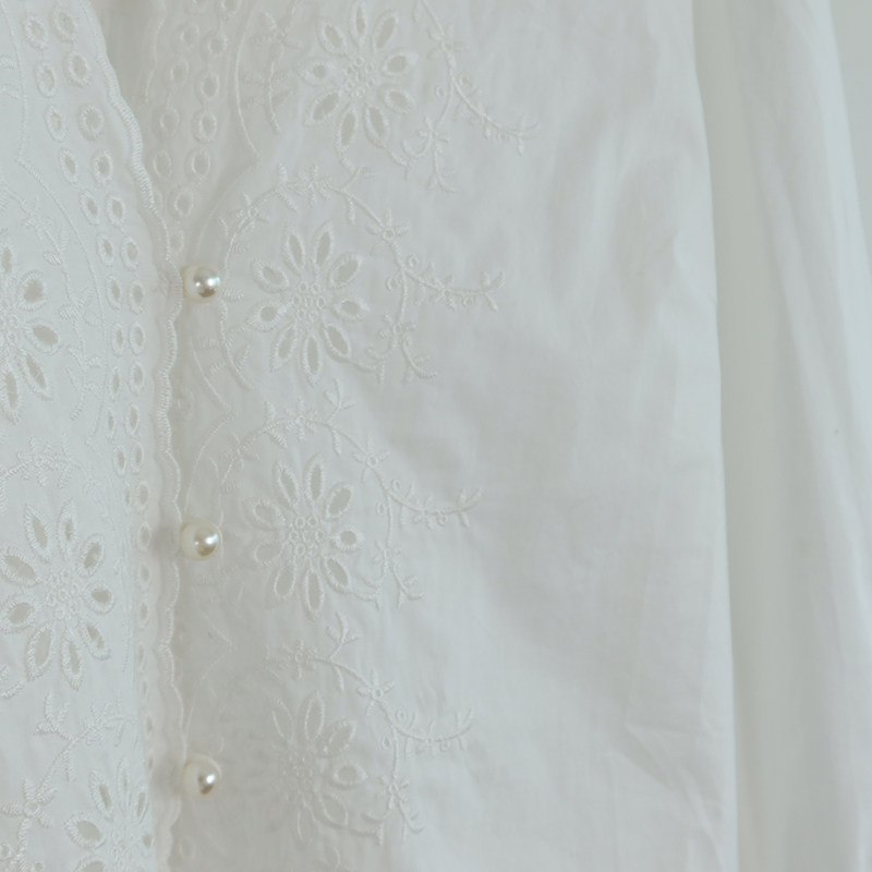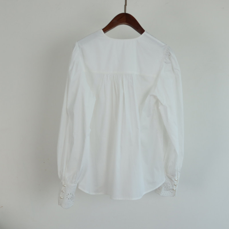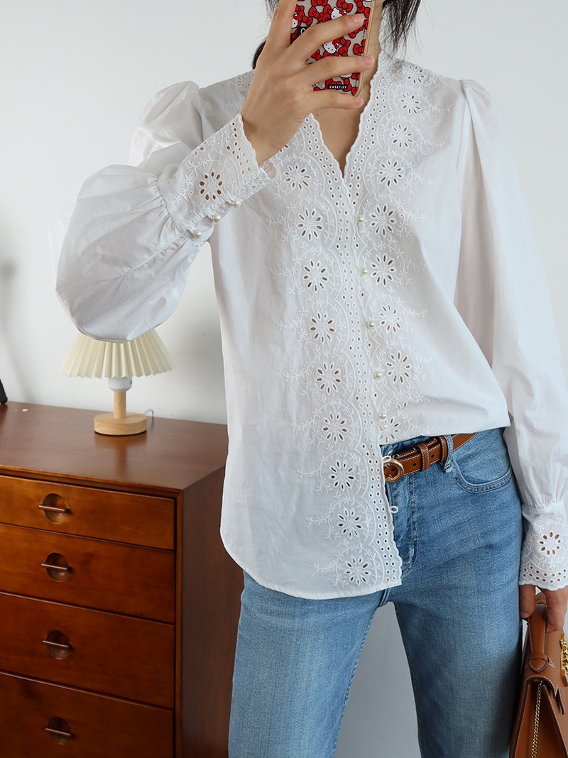 Ретро фонарь, рубашка, французский ретро стиль, с вышивкой, V-образный вырез