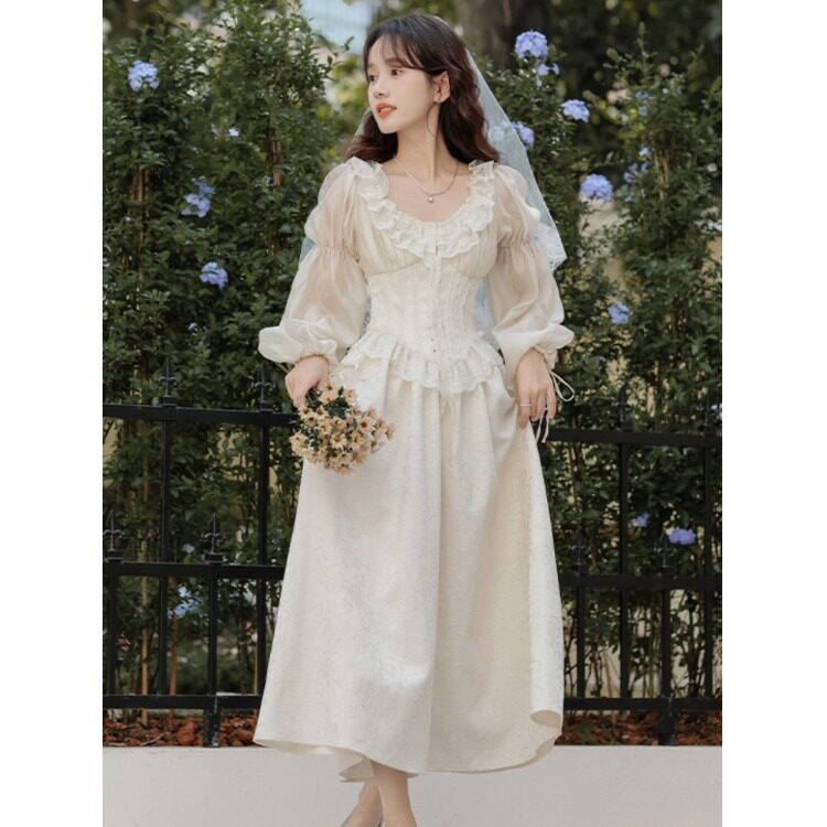 Ретро осеннее платье, длинная юбка, французский стиль