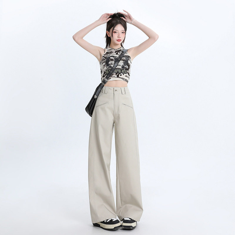 Летние штаны, свободный прямой крой, высокая талия