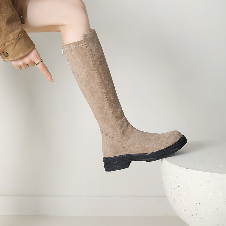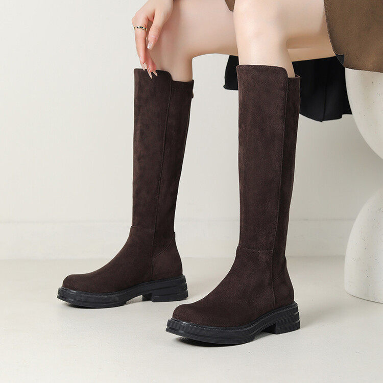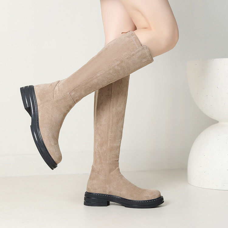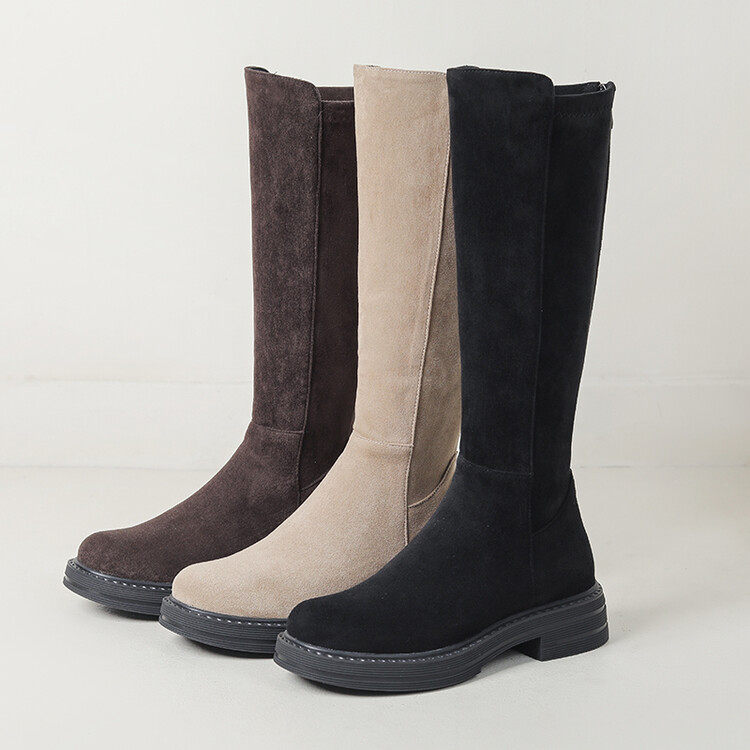 Замшевые демисезонные эластичные высокие сапоги, 2024 года