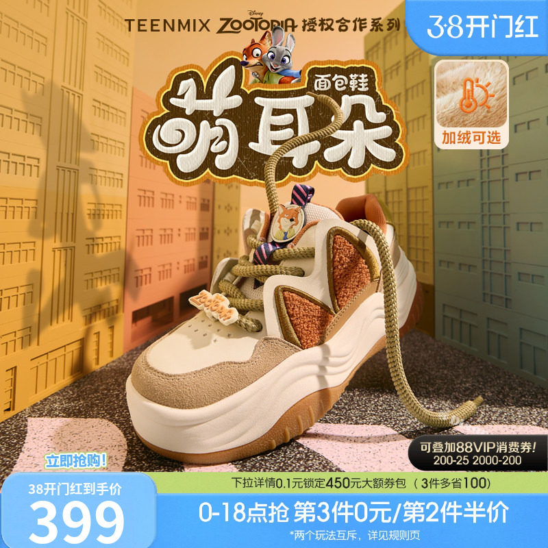 Wu Xin's Same Tianmeiyi Crazy Zootopia совместная пара хлебных белых туфель на толстой подошве и бархатных повседневных кроссовок