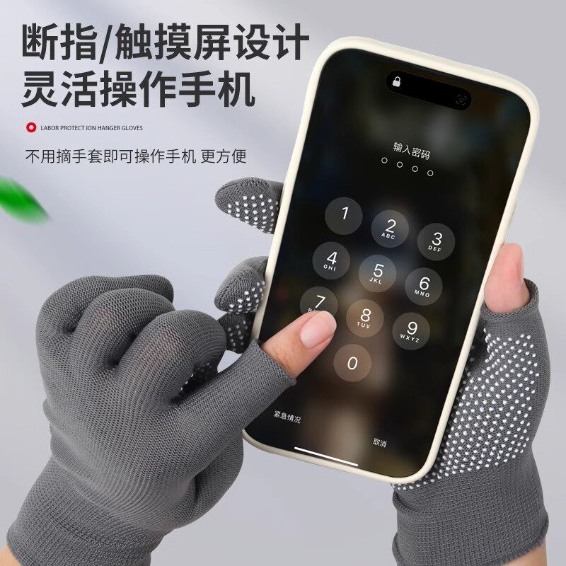 Нейлоновые утолщенные нескользящие мужские рабочие перчатки для стройки, износостойкие клеевые точечные резиновые инструменты, женские рабочие перчатки с сенсорным экраном
