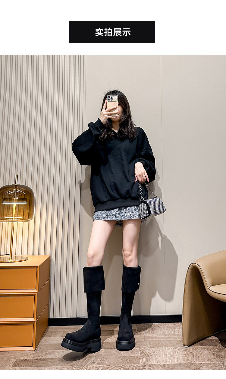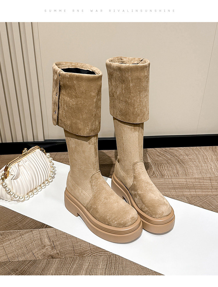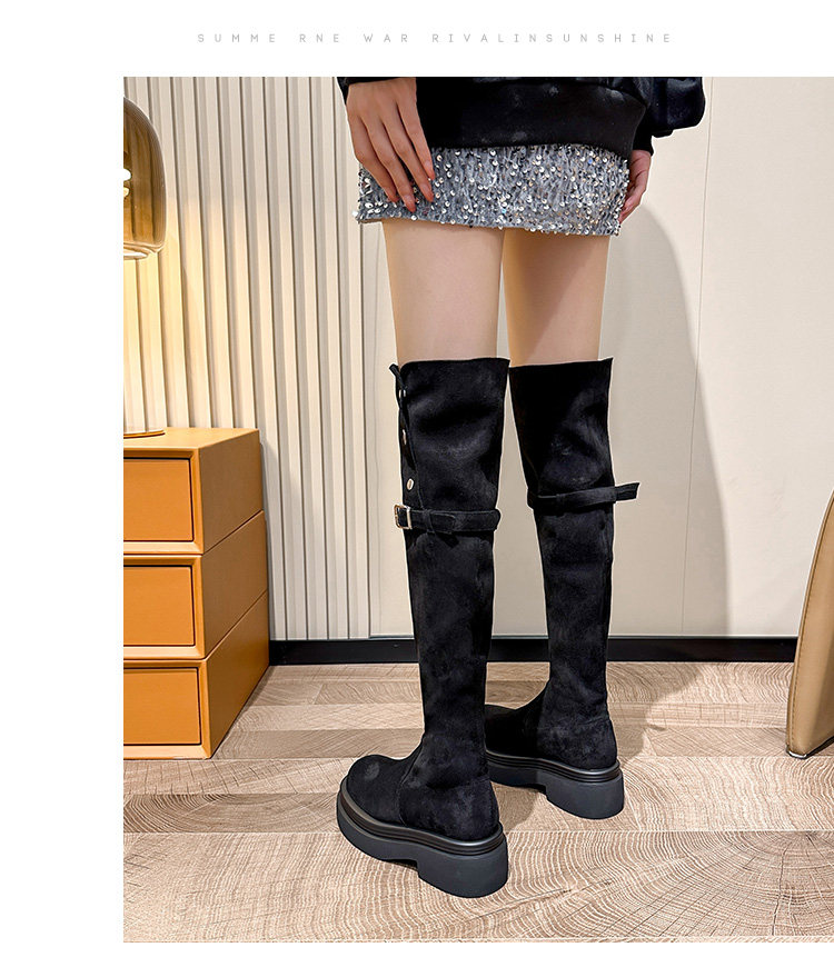 Cross -Knee Long Boots Женские толстые ноги и широкие трубки ретро толстое дно увеличить рыцарные ботинки две большие ванны в больших тонких сапогах Большой размер
