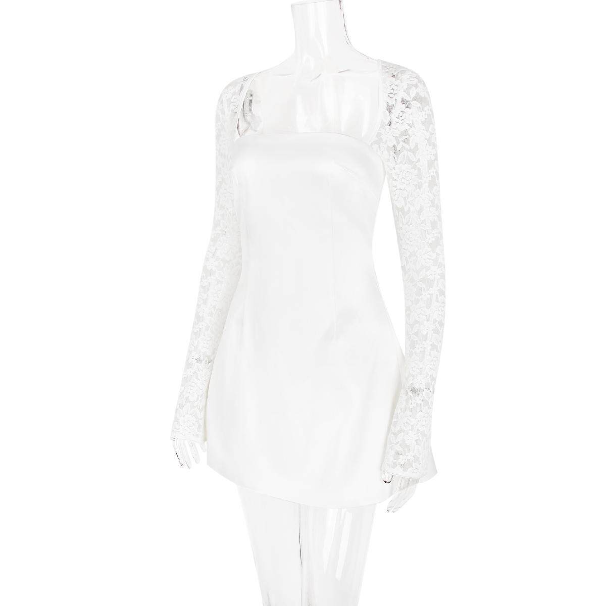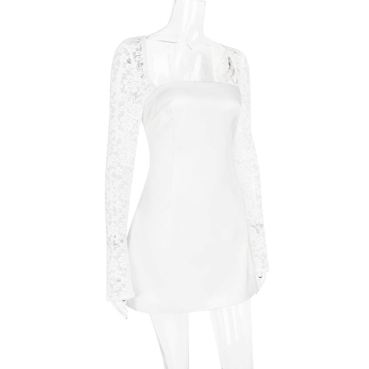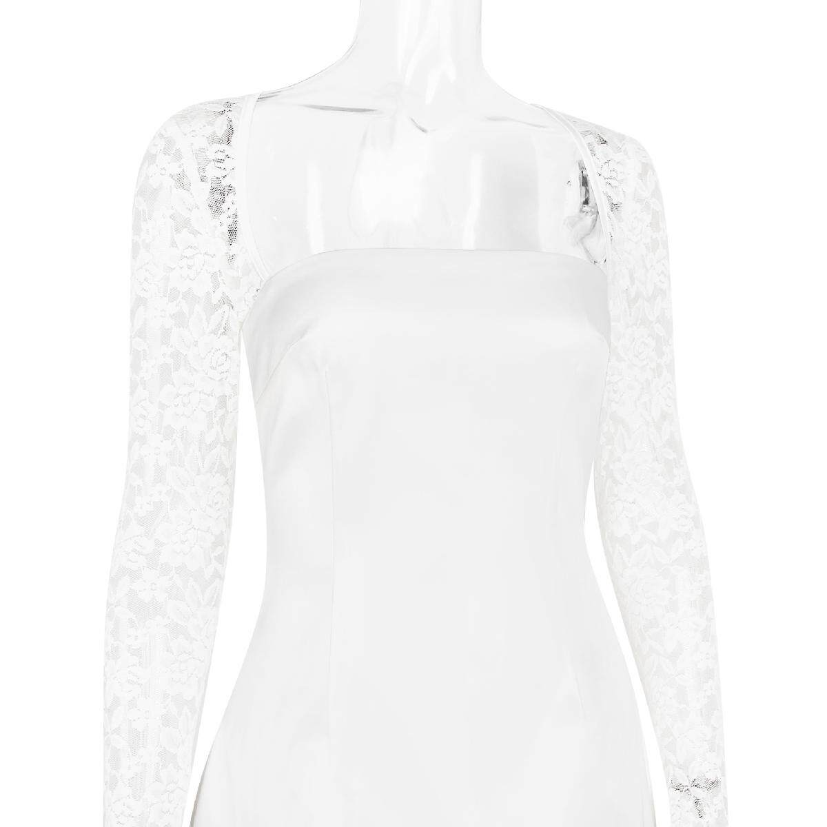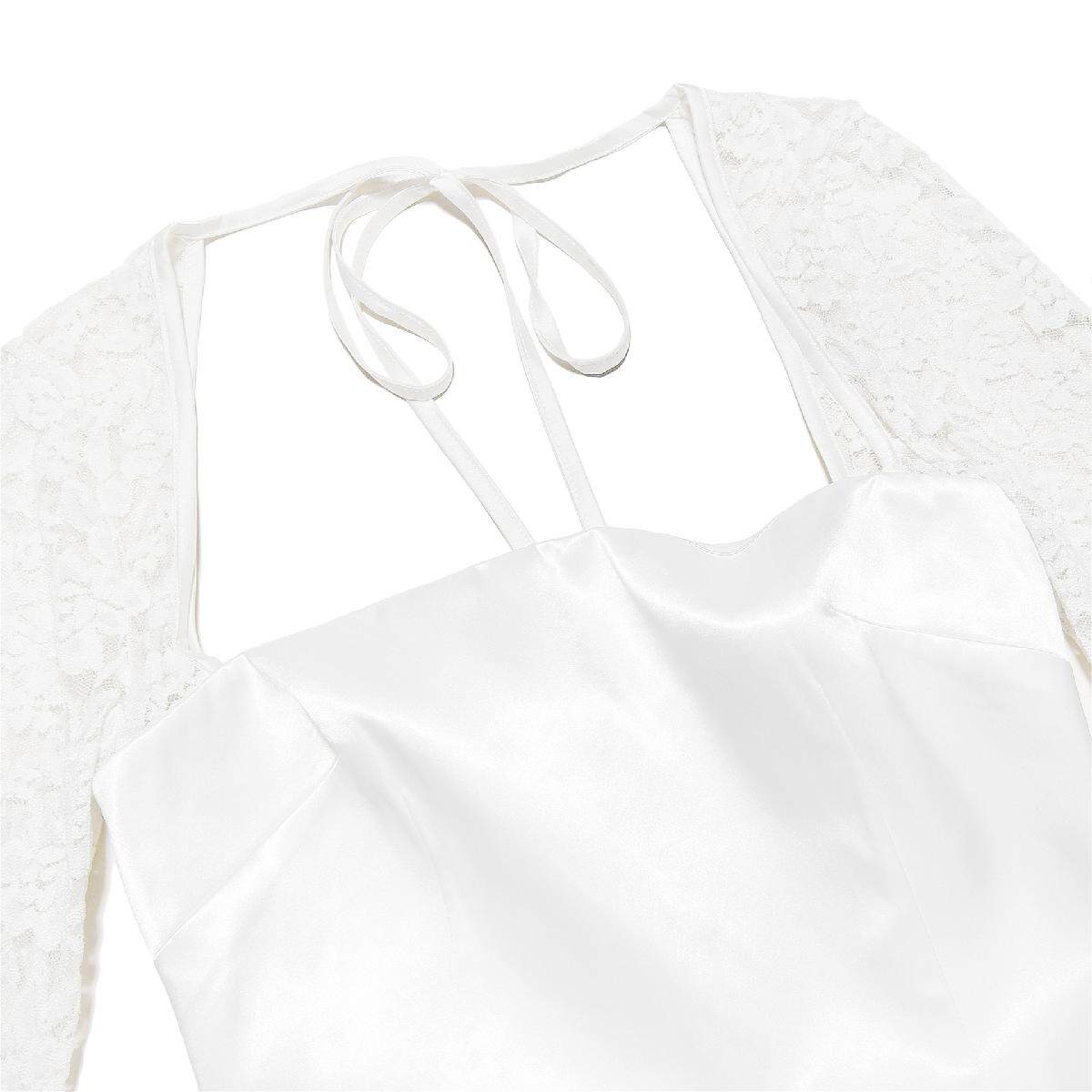 Кружевной лонгслив, юбка, европейский стиль, изысканный стиль, квадратный вырез, тонкий ремешок, А-силуэт