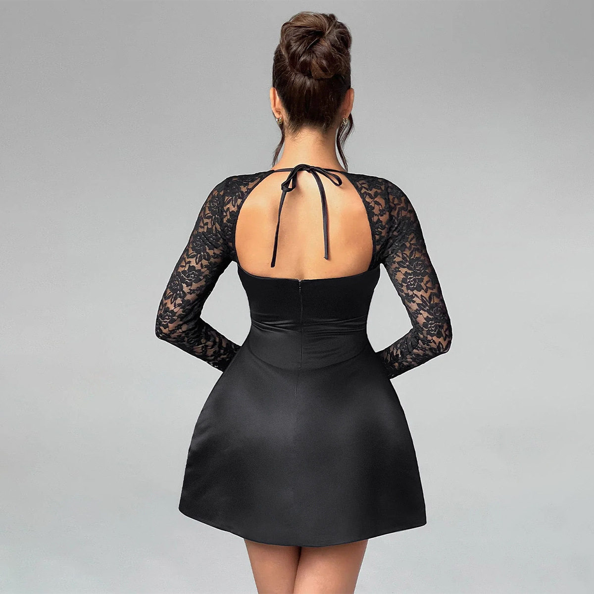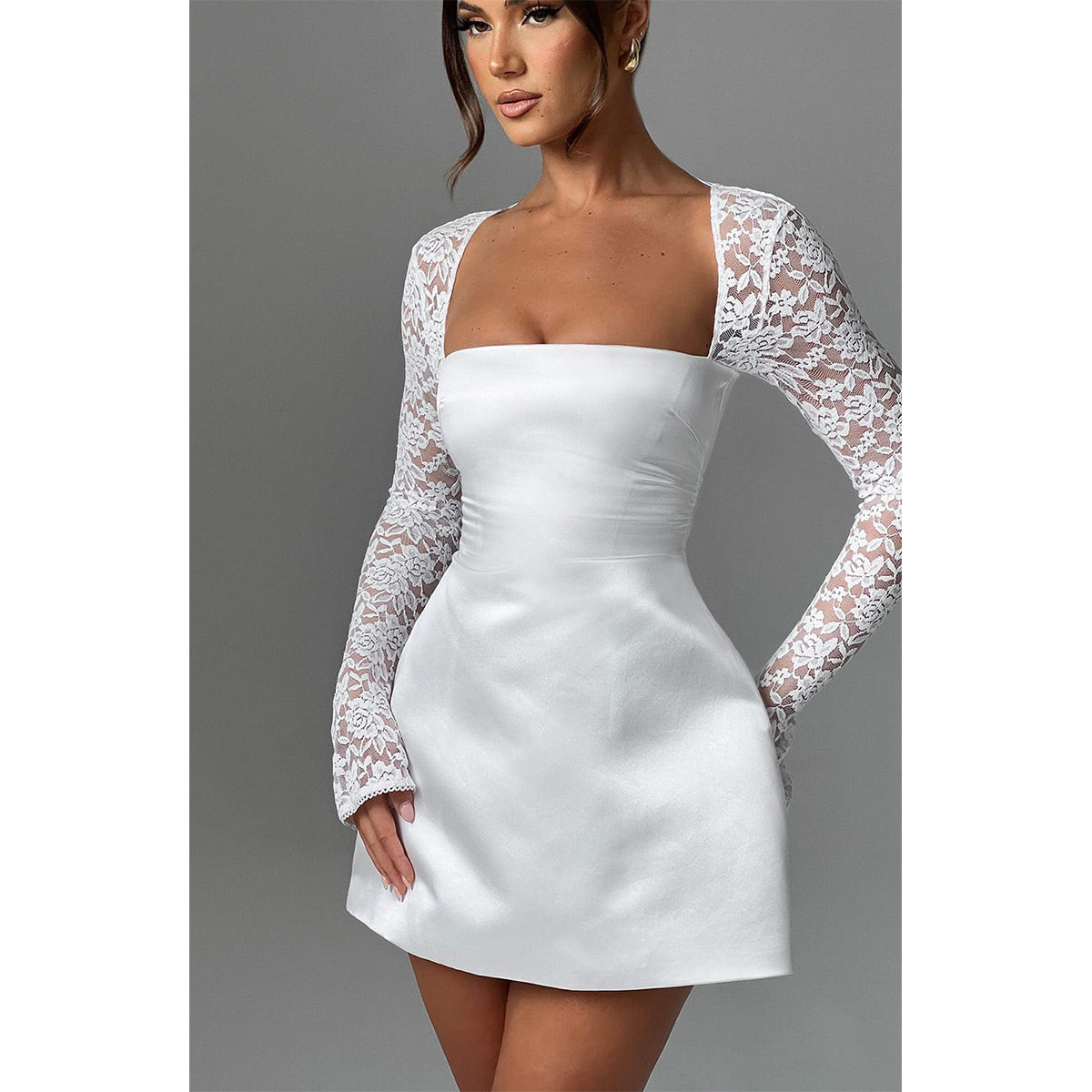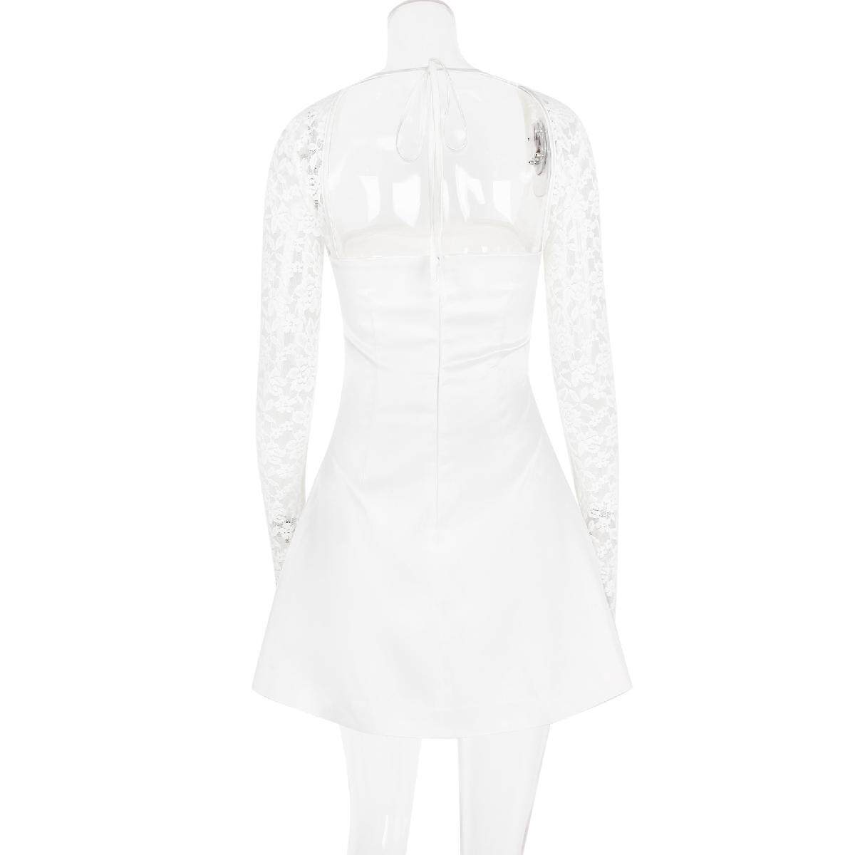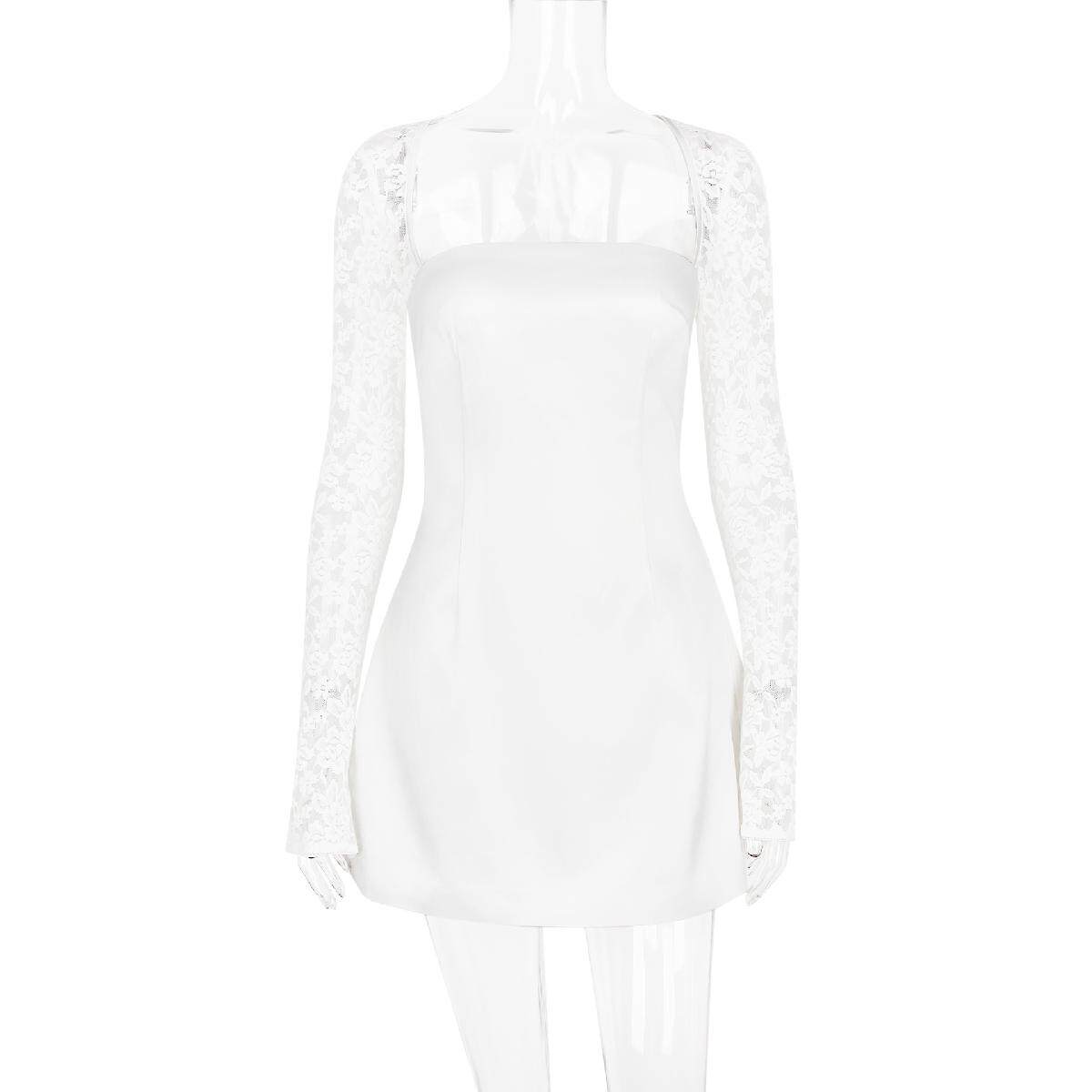 Кружевной лонгслив, юбка, европейский стиль, изысканный стиль, квадратный вырез, тонкий ремешок, А-силуэт