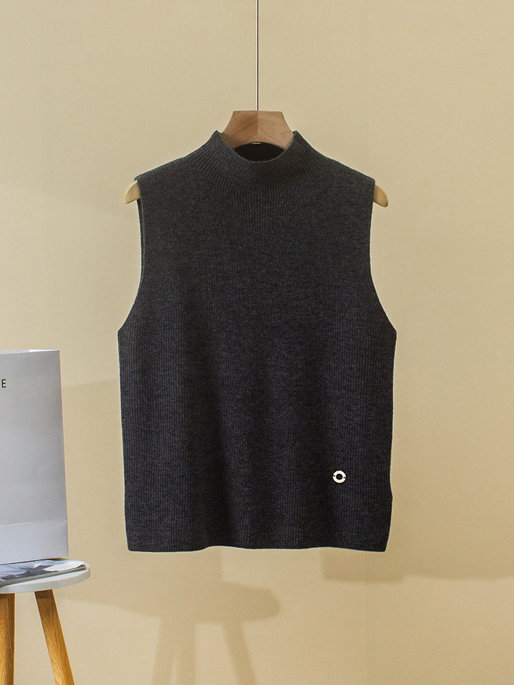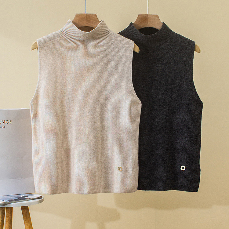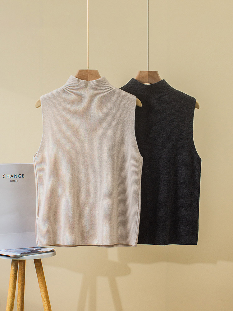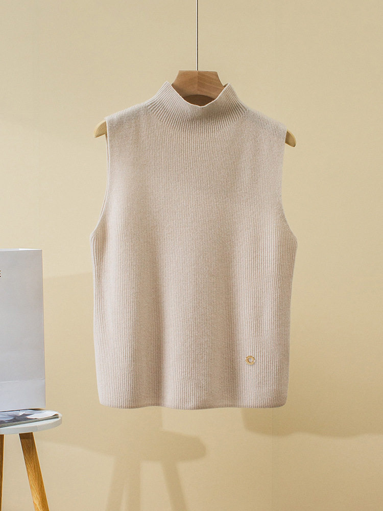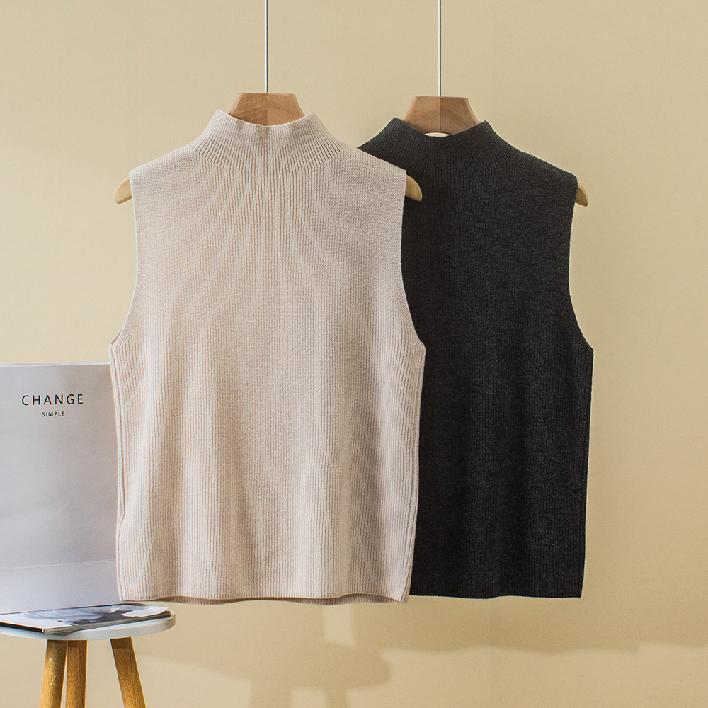 Демисезонный кашемировый жилет, трикотажный свитер без рукавов, высокий воротник