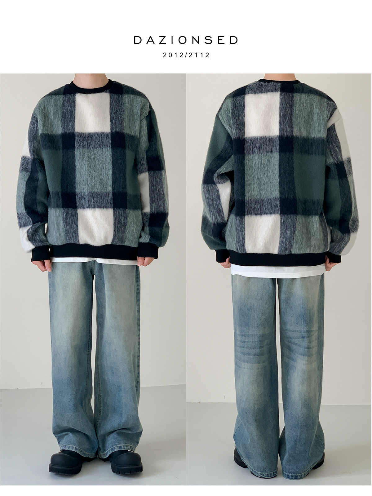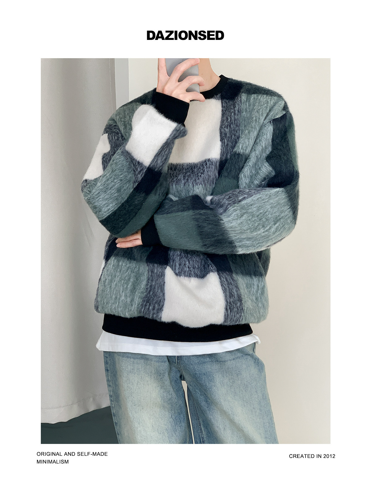 Dazo осень и зима сгущенная мохерская толстовка композитной клетки для мальчиков силуэт теплый пуловер.