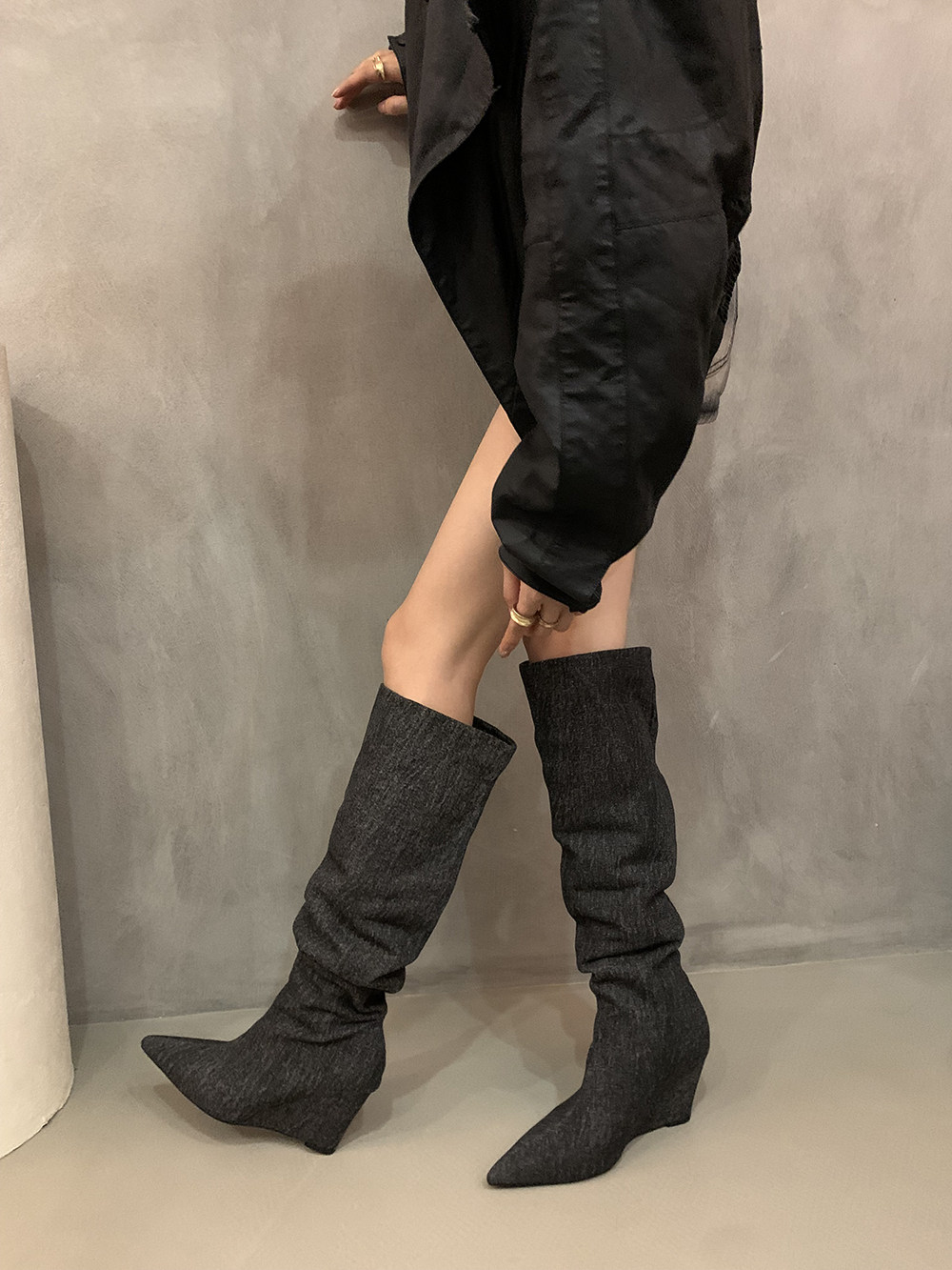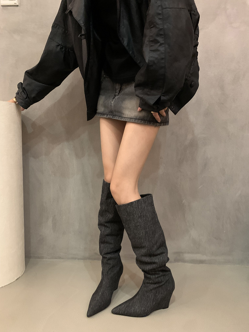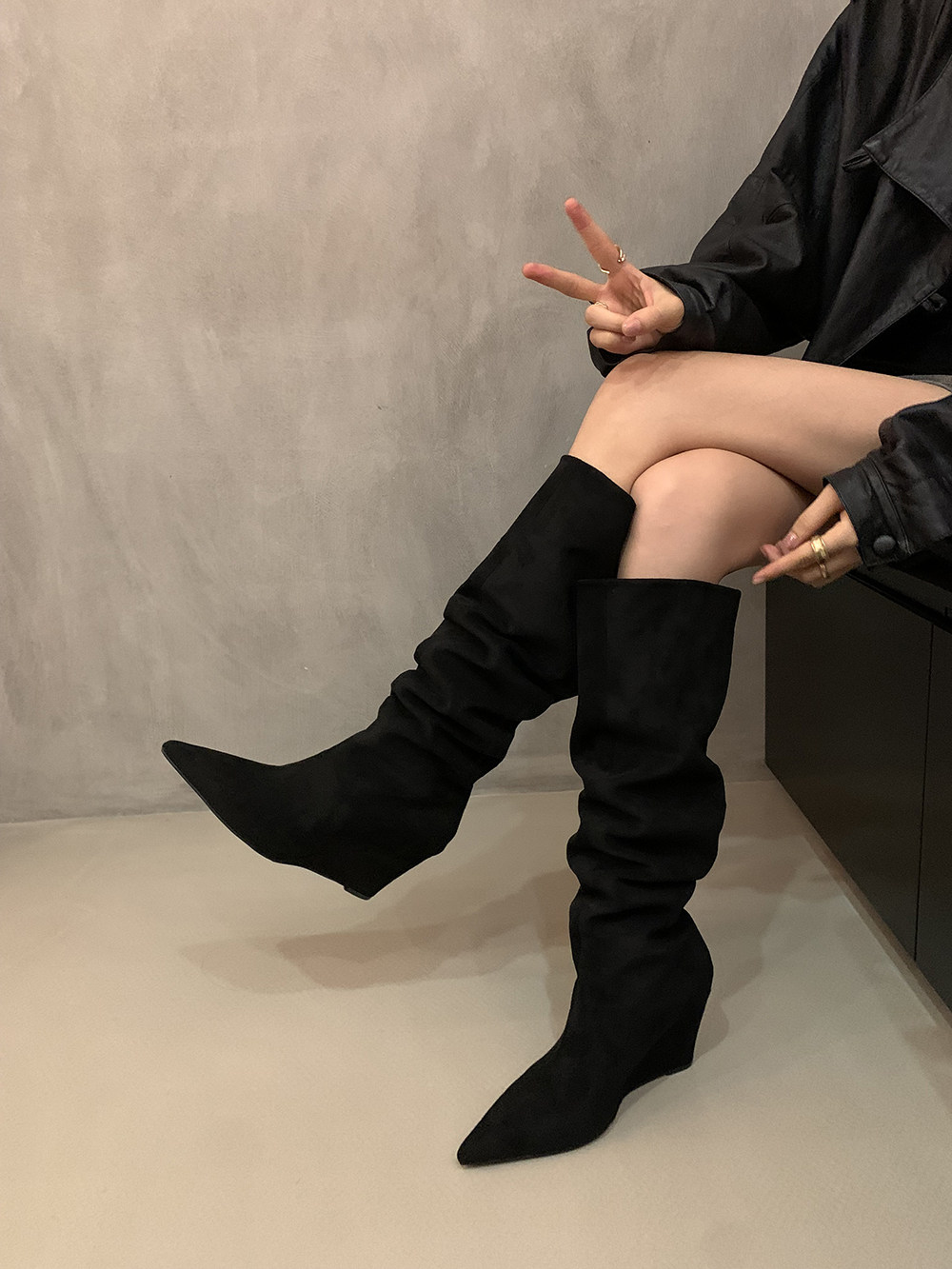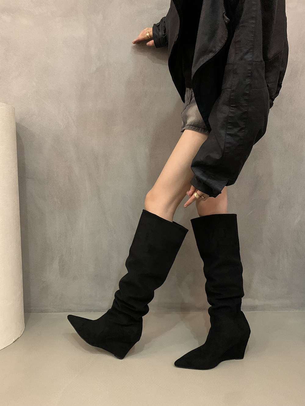 Хаки замшевые высокие сапоги, джинсовые ботинки, французский стиль