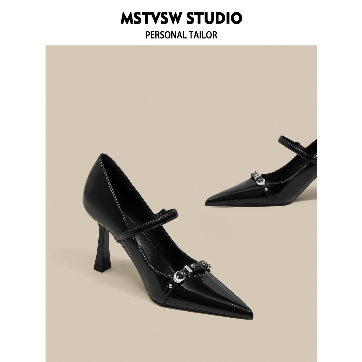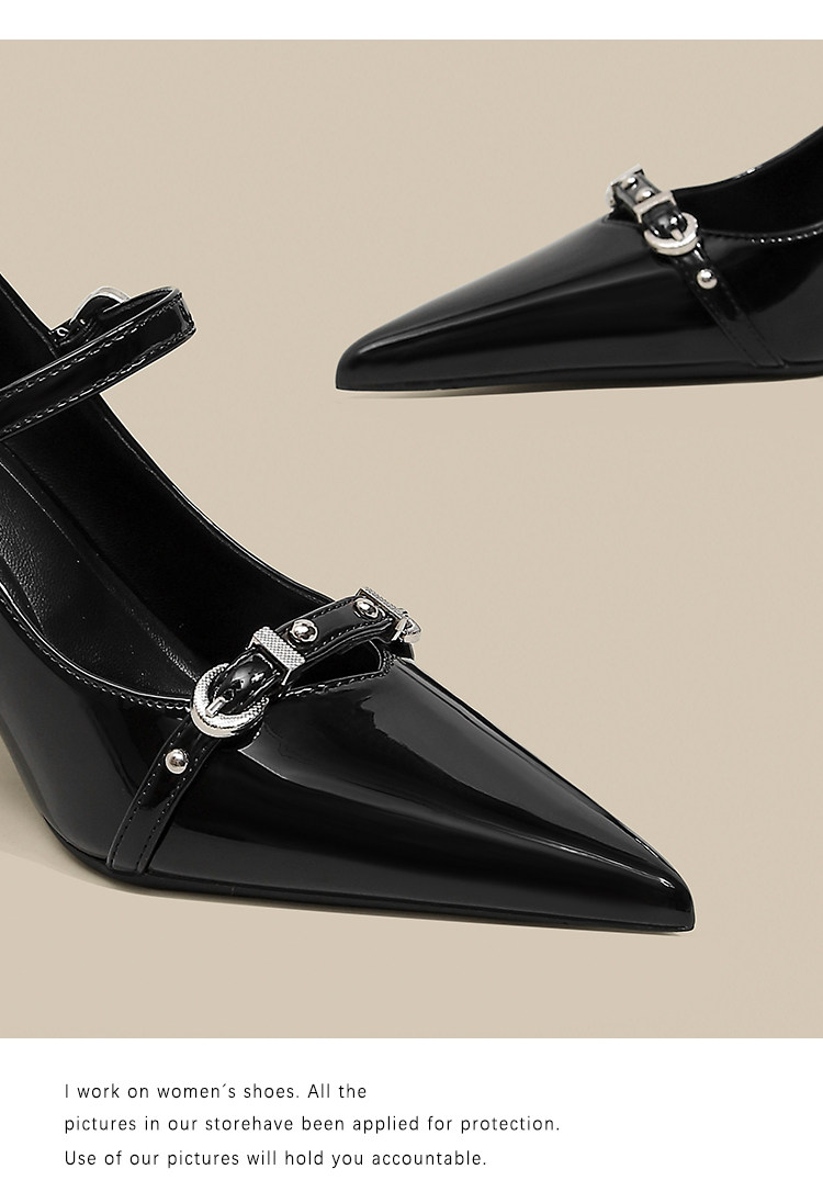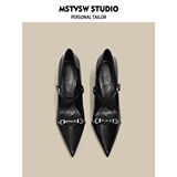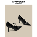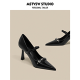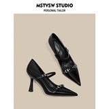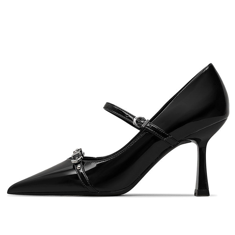Черные небольшие дизайнерские металлические туфли на высоком каблуке на высоком каблуке, обувь с заостренным носом с низким вырезом
