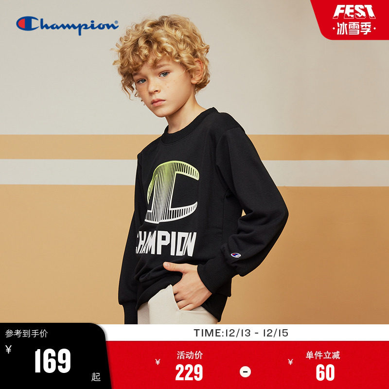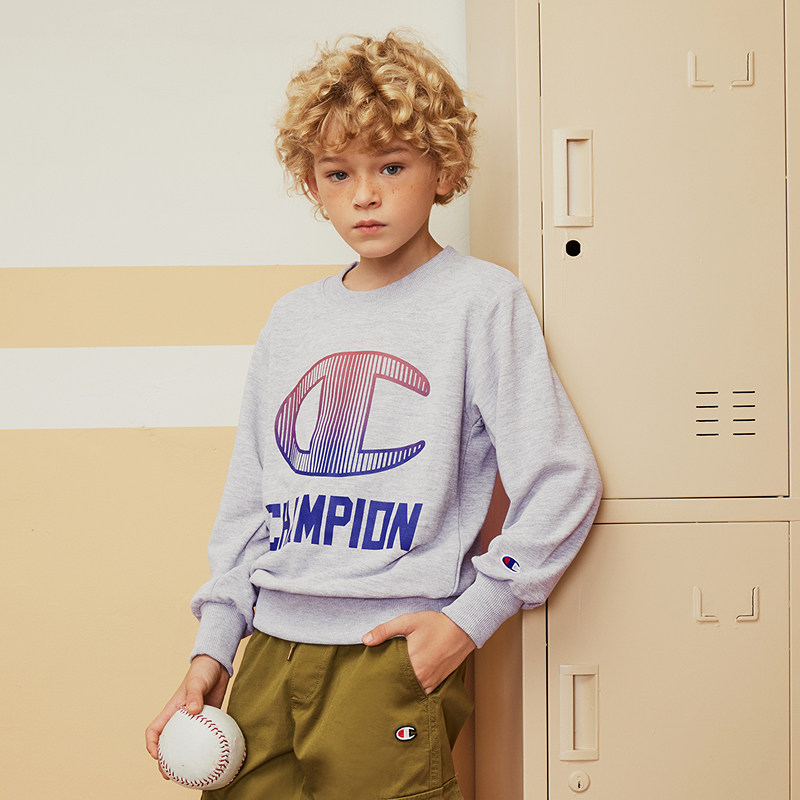 Champion Champion для больших и маленьких детей, 24 года, осенний большой логотип, спортивный слегка эластичный свитшот с круглым вырезом, модная куртка