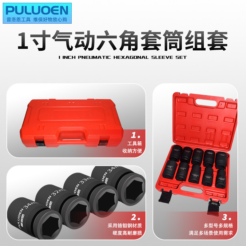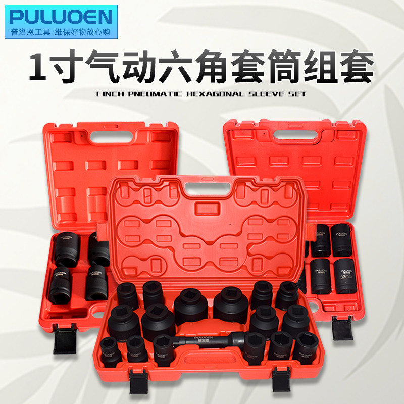 Набор пневматических головок на 1 дюйм, сверхмощный пневматический ключ для снятия шин, шестиугольная утолщенная ветровая пушка толщиной один дюйм, 32 комплекта