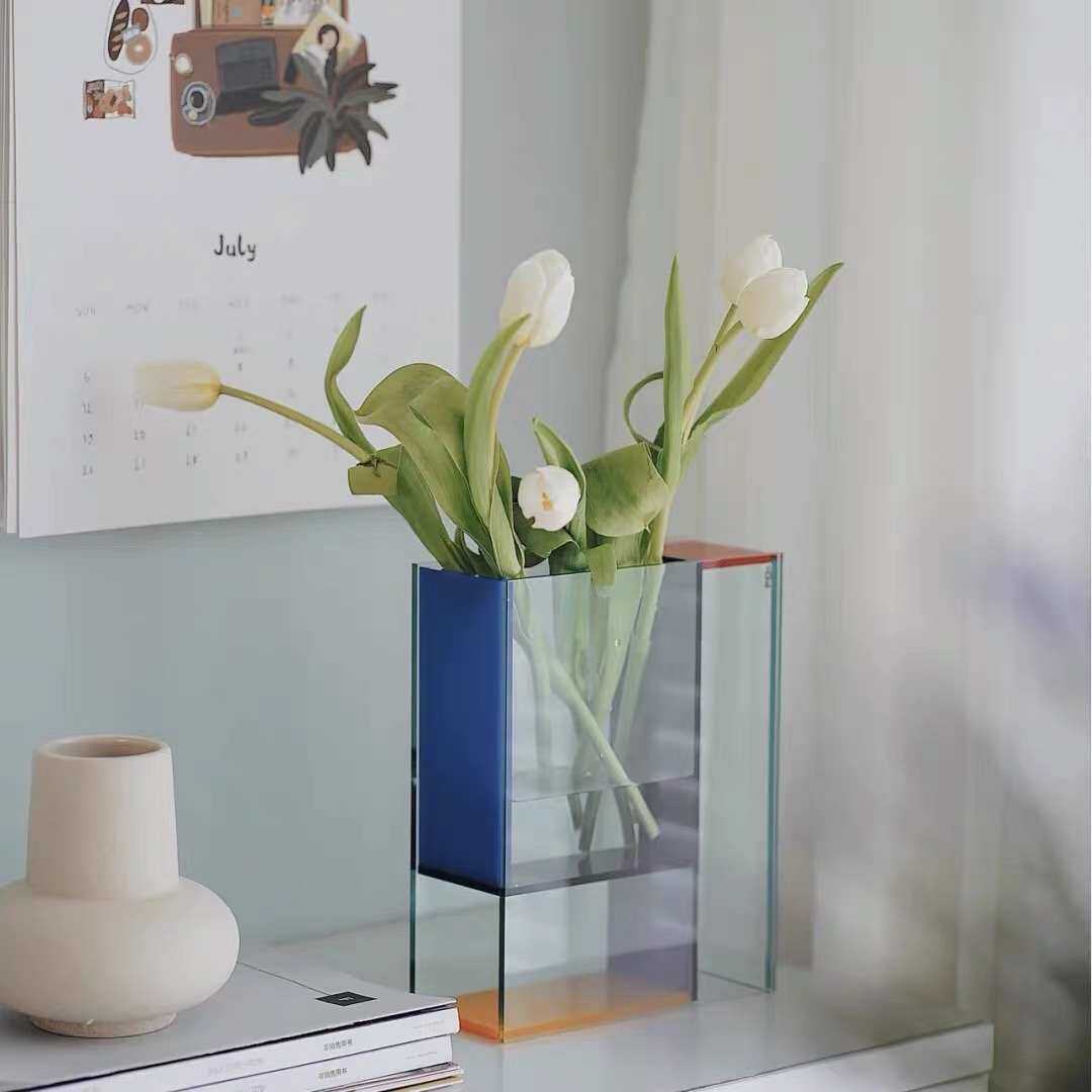 Мондрианская акриловая ваза Многофункциональная простая ins Современная контрастная цветовая двойная цветочная плексиглас